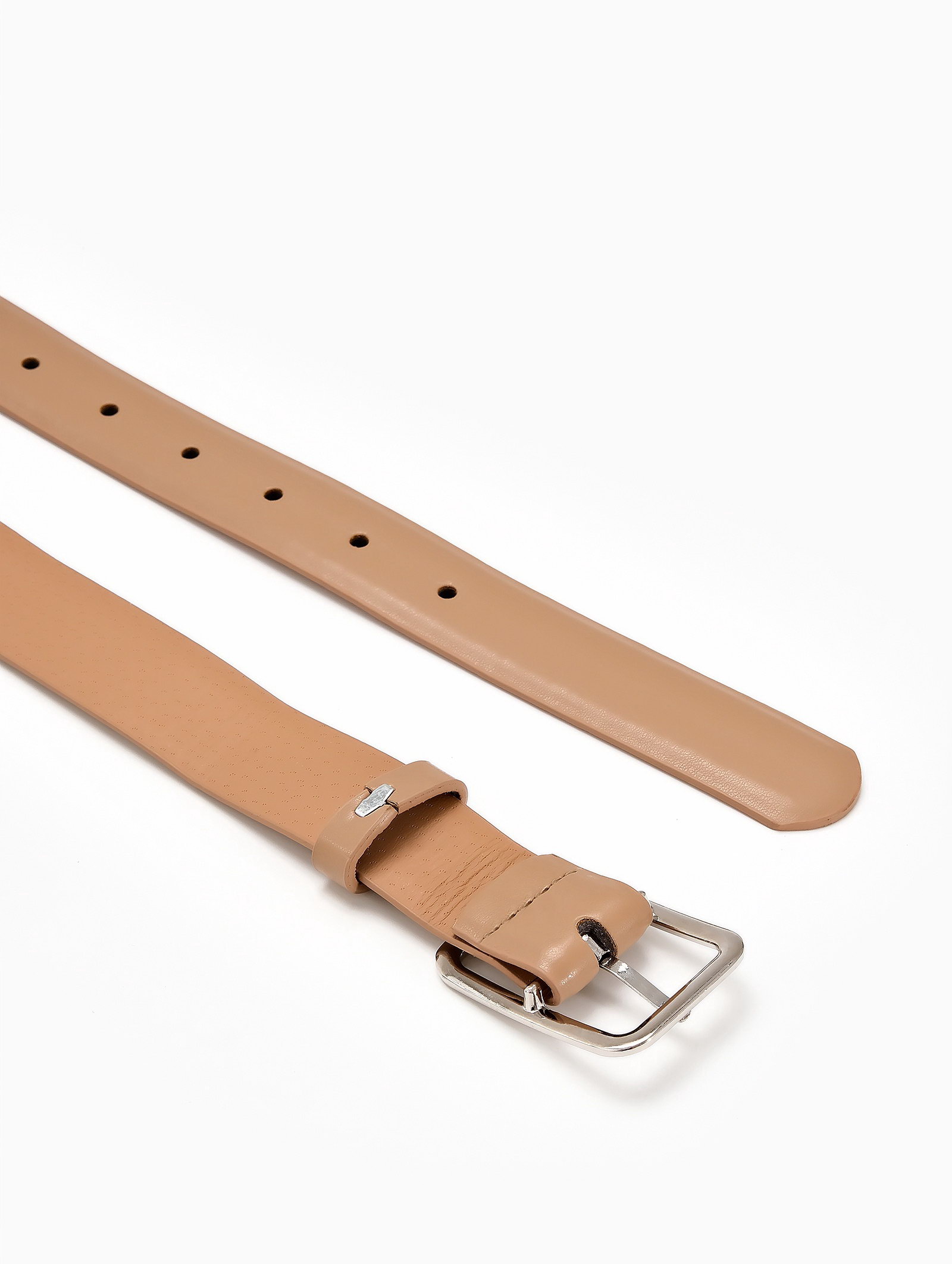 В гардеробе Бежевый ремень объединяет элементы светлой и темной одежды в целостный образ. Матовая поверхность пряжки создает современный акцент, который сочетается с серебряными украшениями. Ширина 3 см обеспечивает четкий силуэт, сохраняя баланс в повседневных и деловых комплектах. | ||
