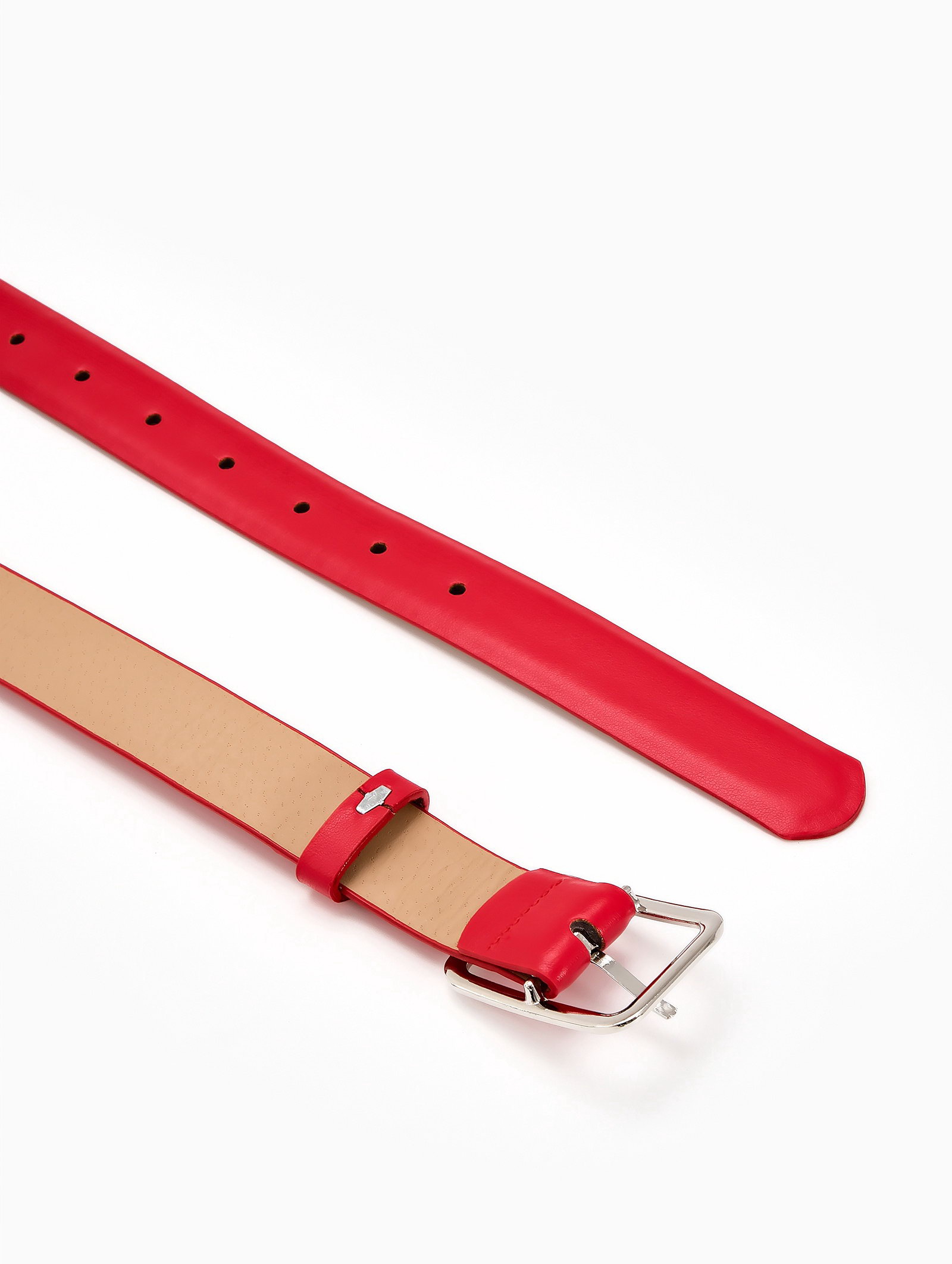 В гардеробе Красный ремень становится главным элементом комплекта, сочетаясь с нейтральными базовыми вещами. Он добавляет энергию монохромным нарядам, сохраняя их гармонию. Матовая пряжка создает современный акцент, который сочетается с серебряными украшениями, а ширина 3 см обеспечивает четкий силуэт в повседневных и вечерних образах. | ||