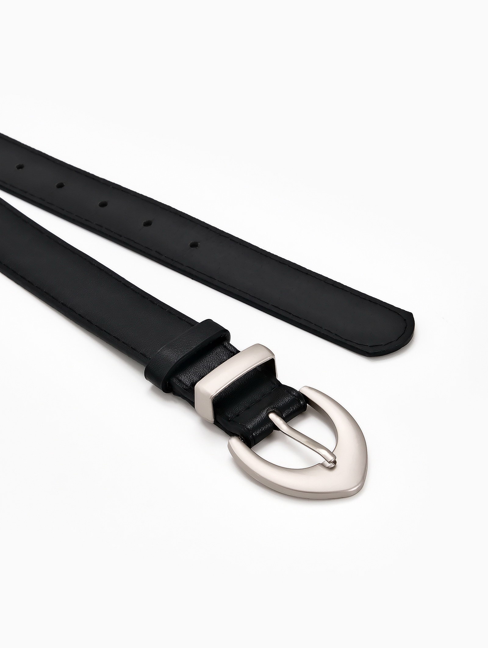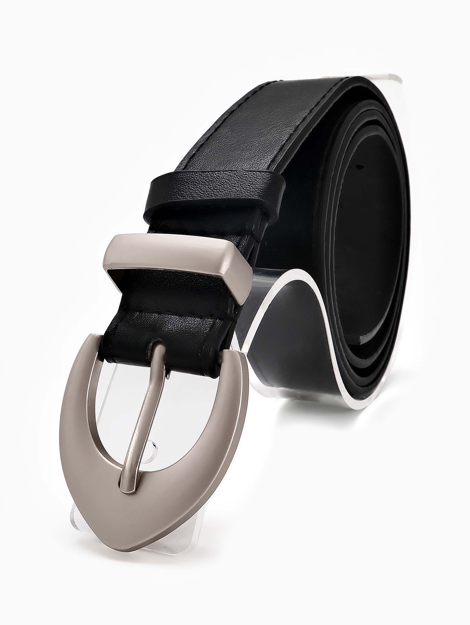 Размер упаковки: 5 x 4.5 x 11 см. tnved: 3926200000 Цвет: Чёрный Для кого: Для женщины Люверс: Нет Вид пряжки: Один прокол Вид упаковки: Пакет Цвет пряжки: Серебряный Длина ремня, см: 110 Вид аксессуара: Ремень Ширина ремня, см: 2.6-3.0 Этот женский ремень черного цвета с матовой пряжкой создает сдержанный и универсальный акцент в образе. Ширина 3 см мягко подчеркивает линию талии, сохраняя комфорт при ежедневном использовании. Матовая серебряная фурнитура добавляет современный штрих, сочетаясь с украшениями в холодной гамме. Особенности