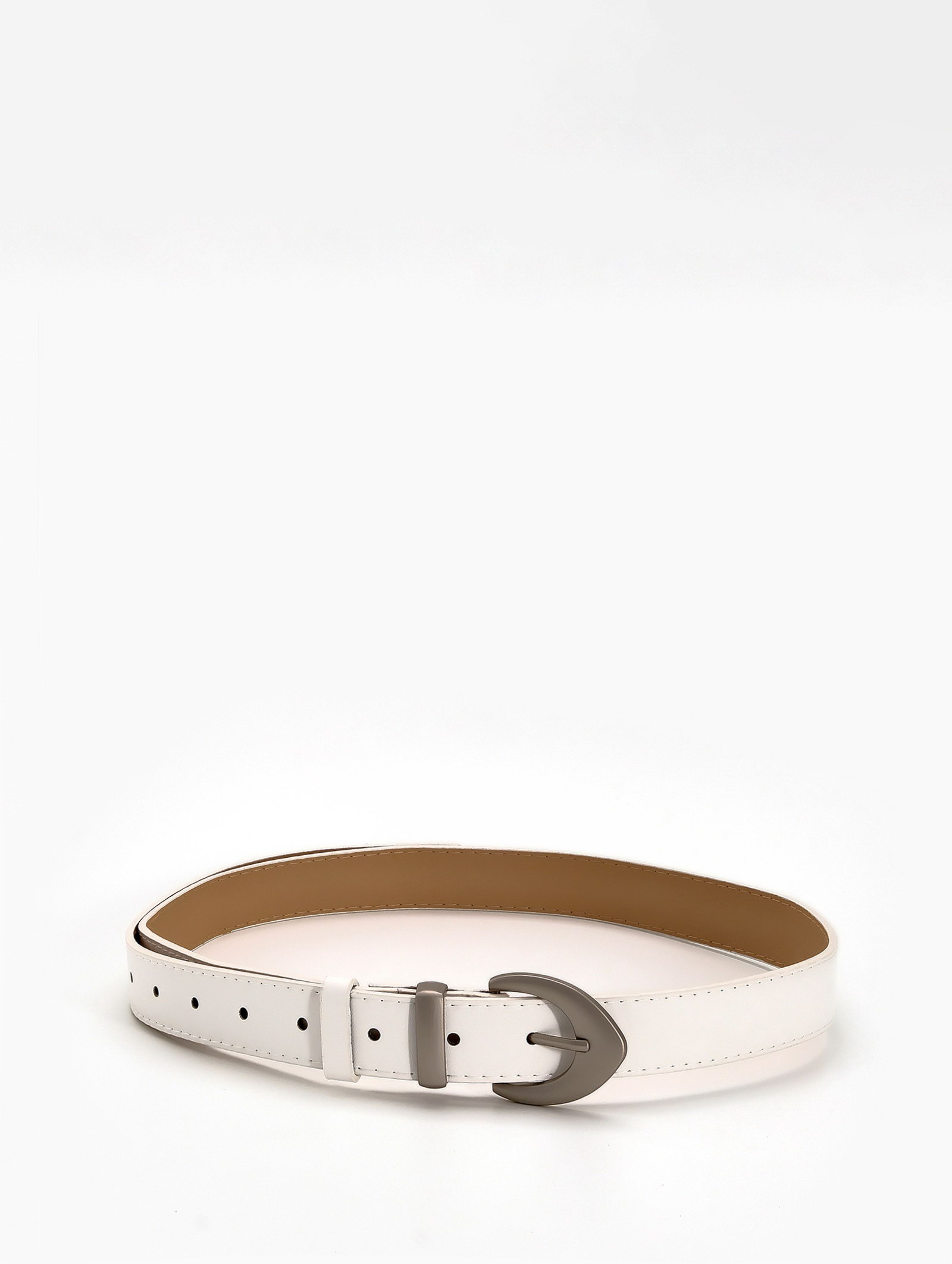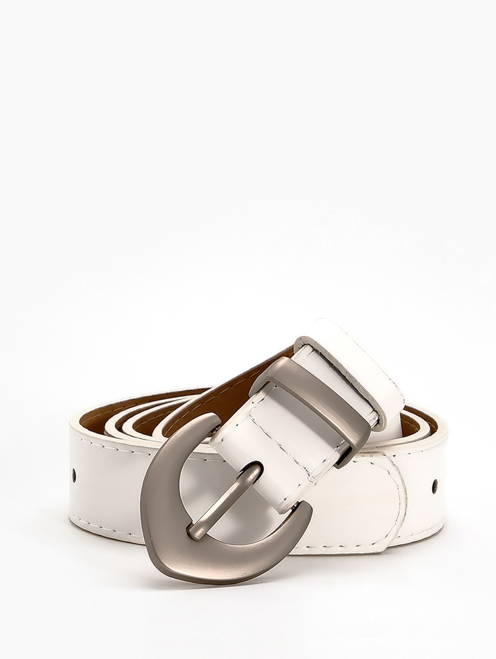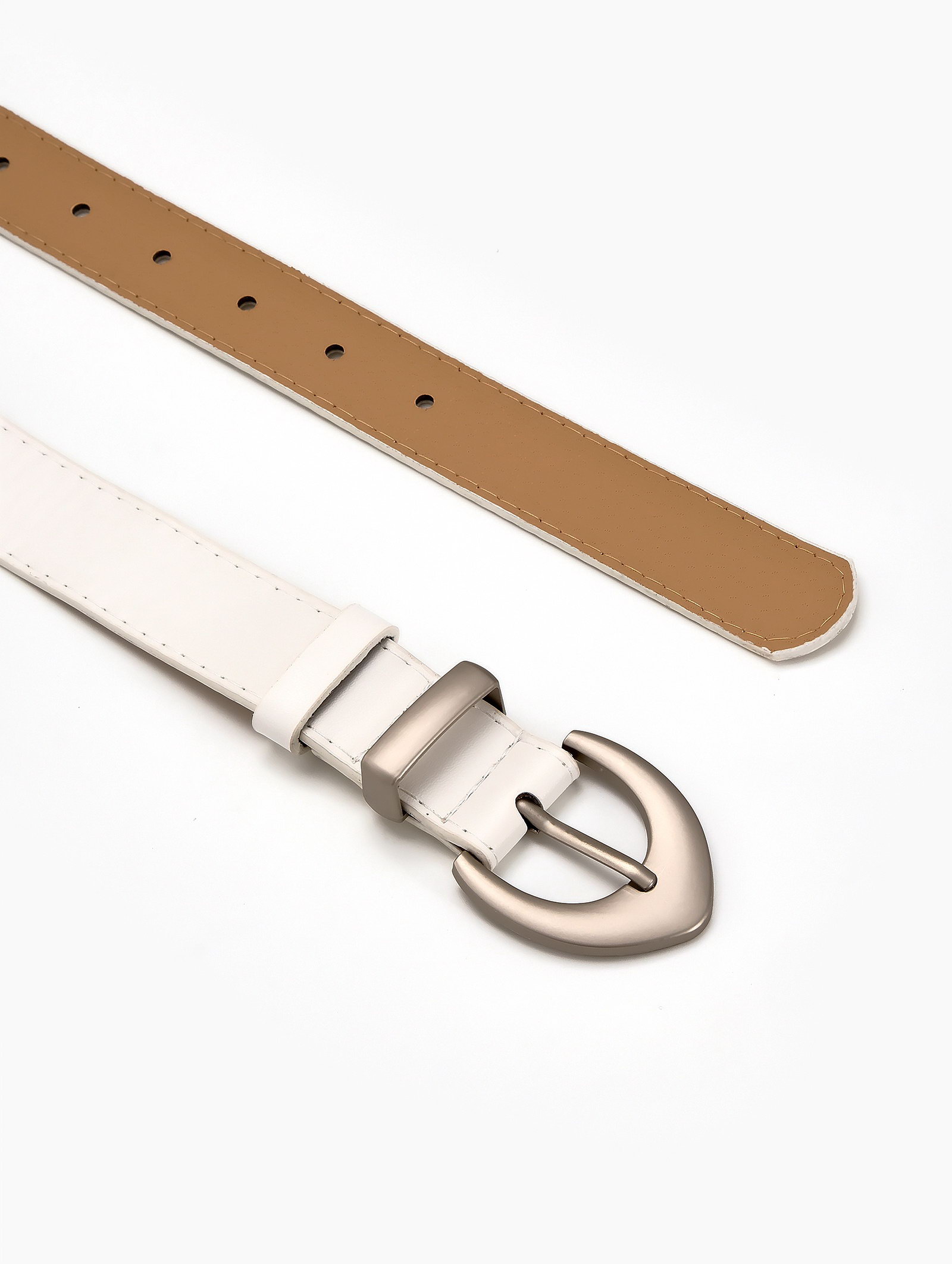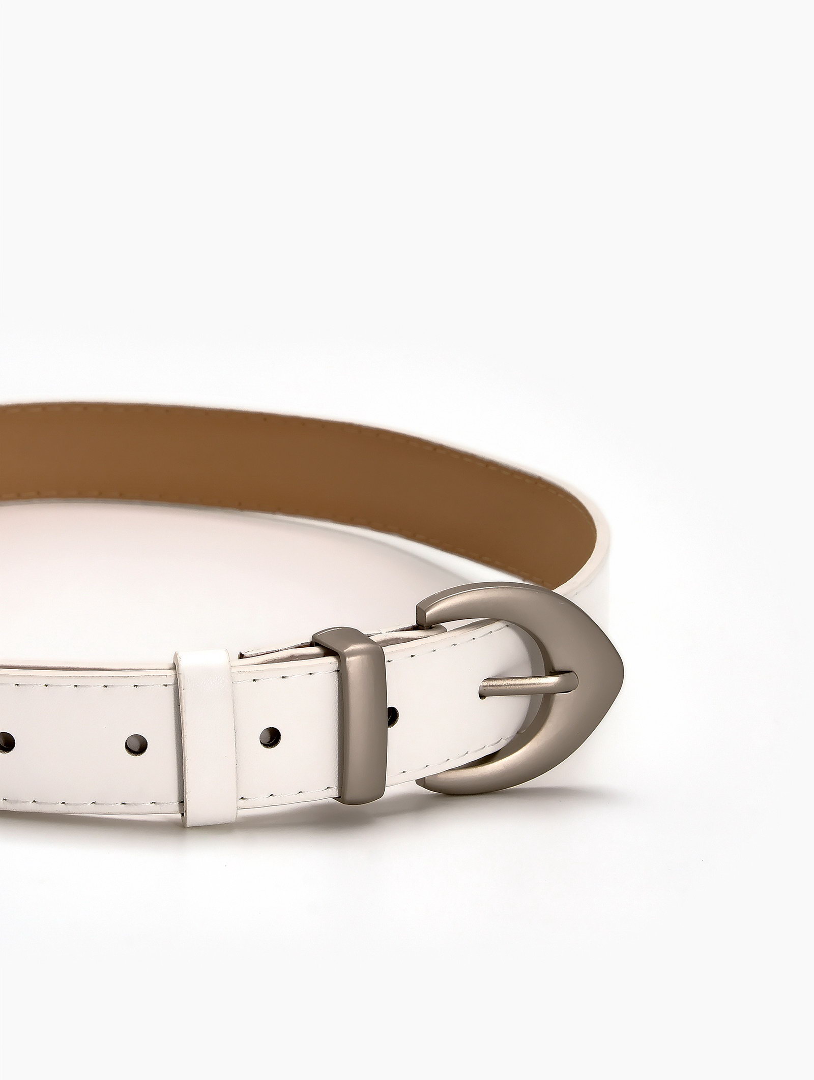 Размер упаковки: 5 x 4.5 x 11 см. tnved: 3926200000 Цвет: Белый Люверс: Нет Цвет пряжки: Серебряный Вид пряжки: Один прокол Вид упаковки: Пакет Для кого: Для женщины Длина ремня, см: 110 Вид аксессуара: Ремень Ширина ремня, см: 2.6-3.0 Белый ремень с матовой серебряной пряжкой добавляет в образ свежесть и легкость. Ширина 3 см мягко определяет линию талии, не создавая излишнего давления. Матовая фурнитура придает современное звучание, сочетаясь с серебряными аксессуарами. Особенности