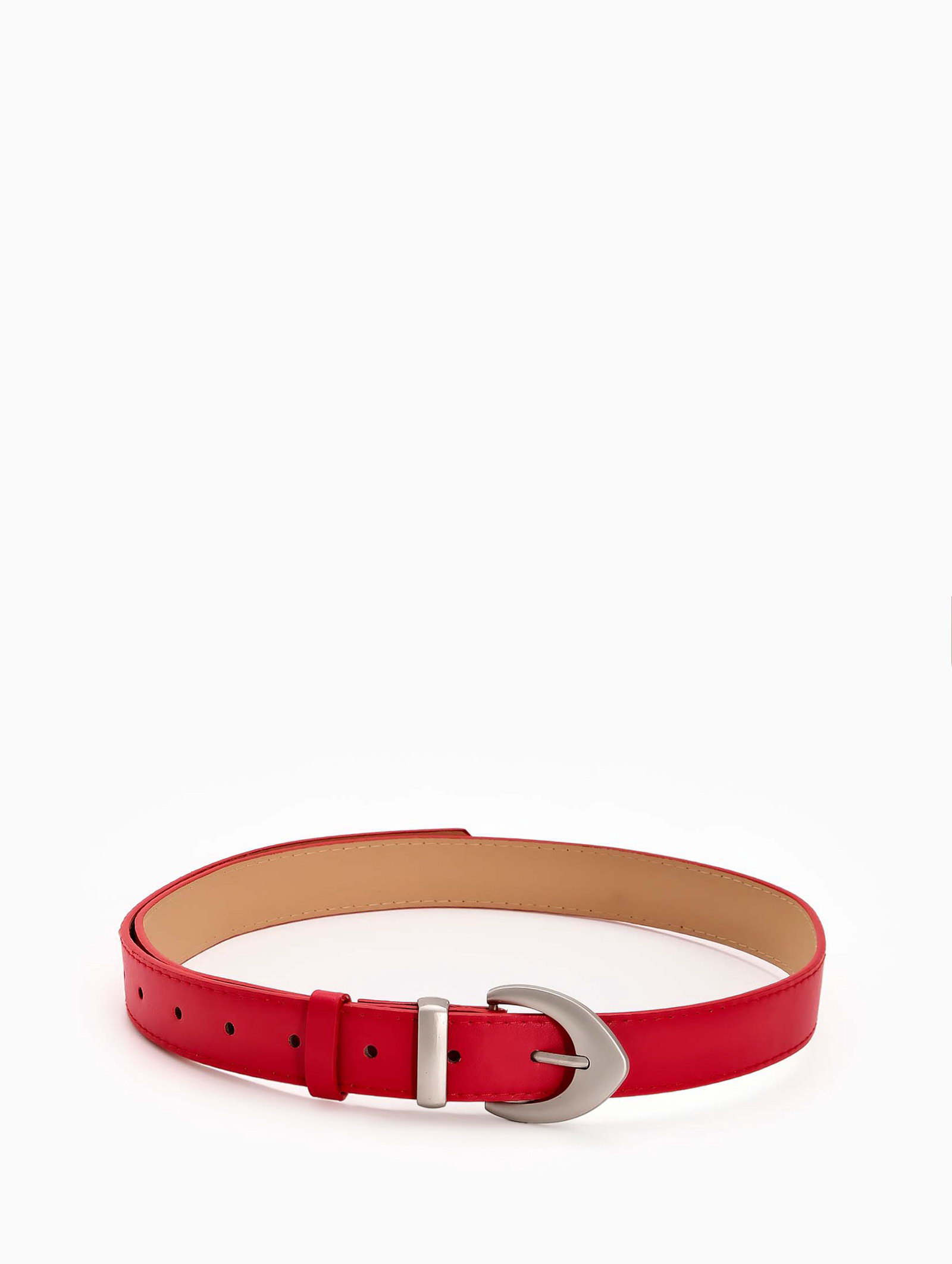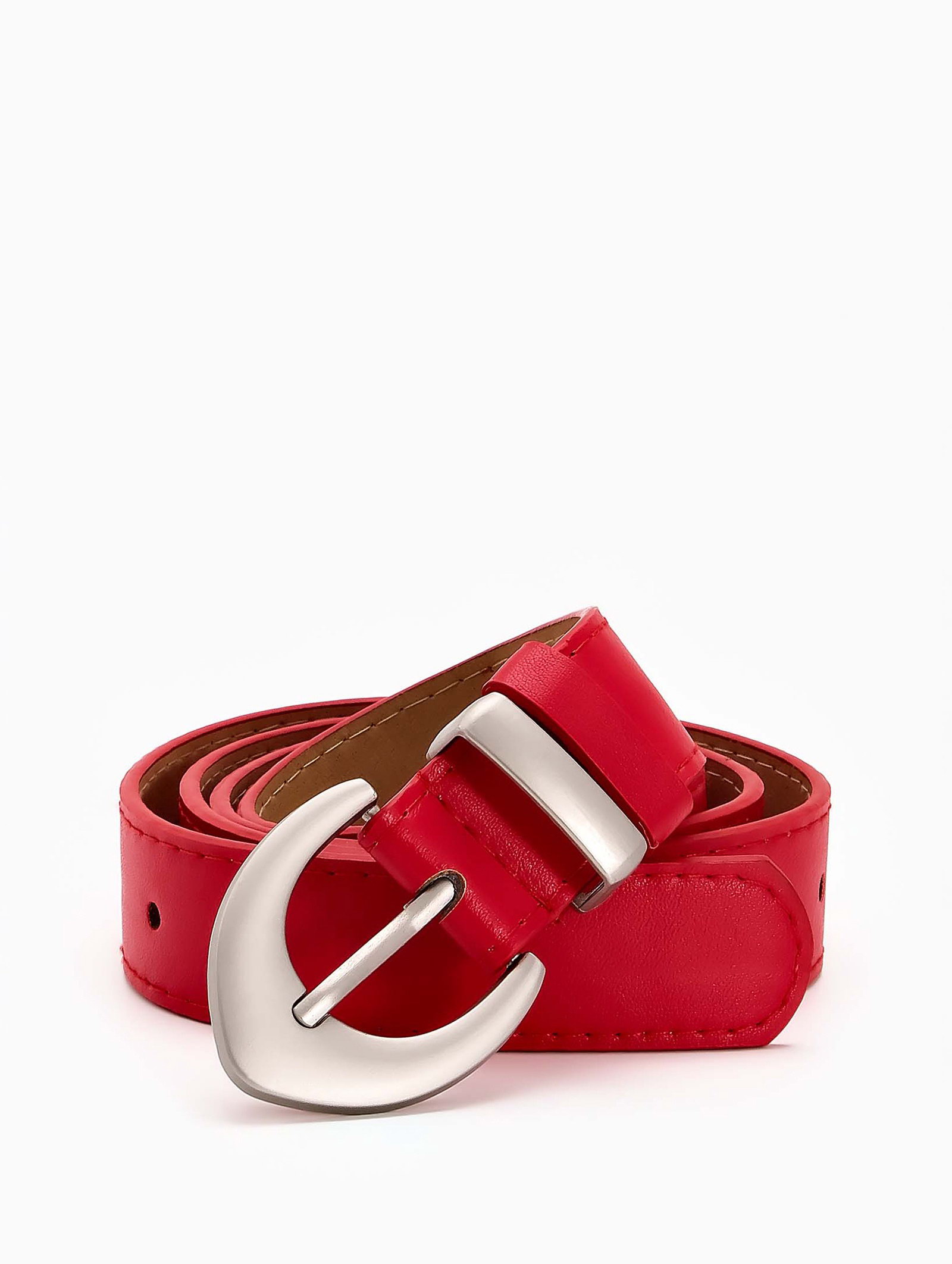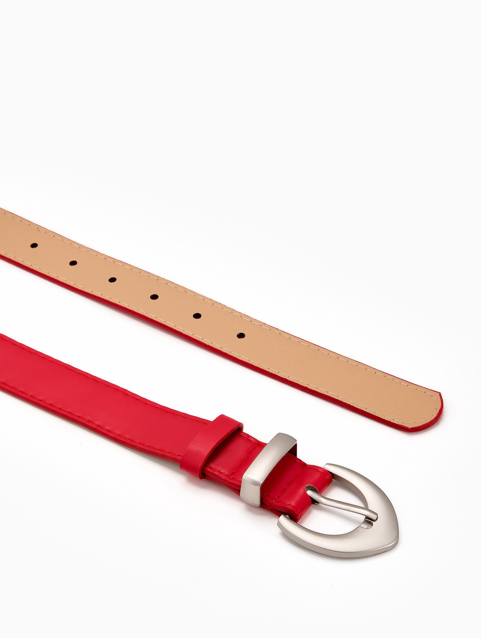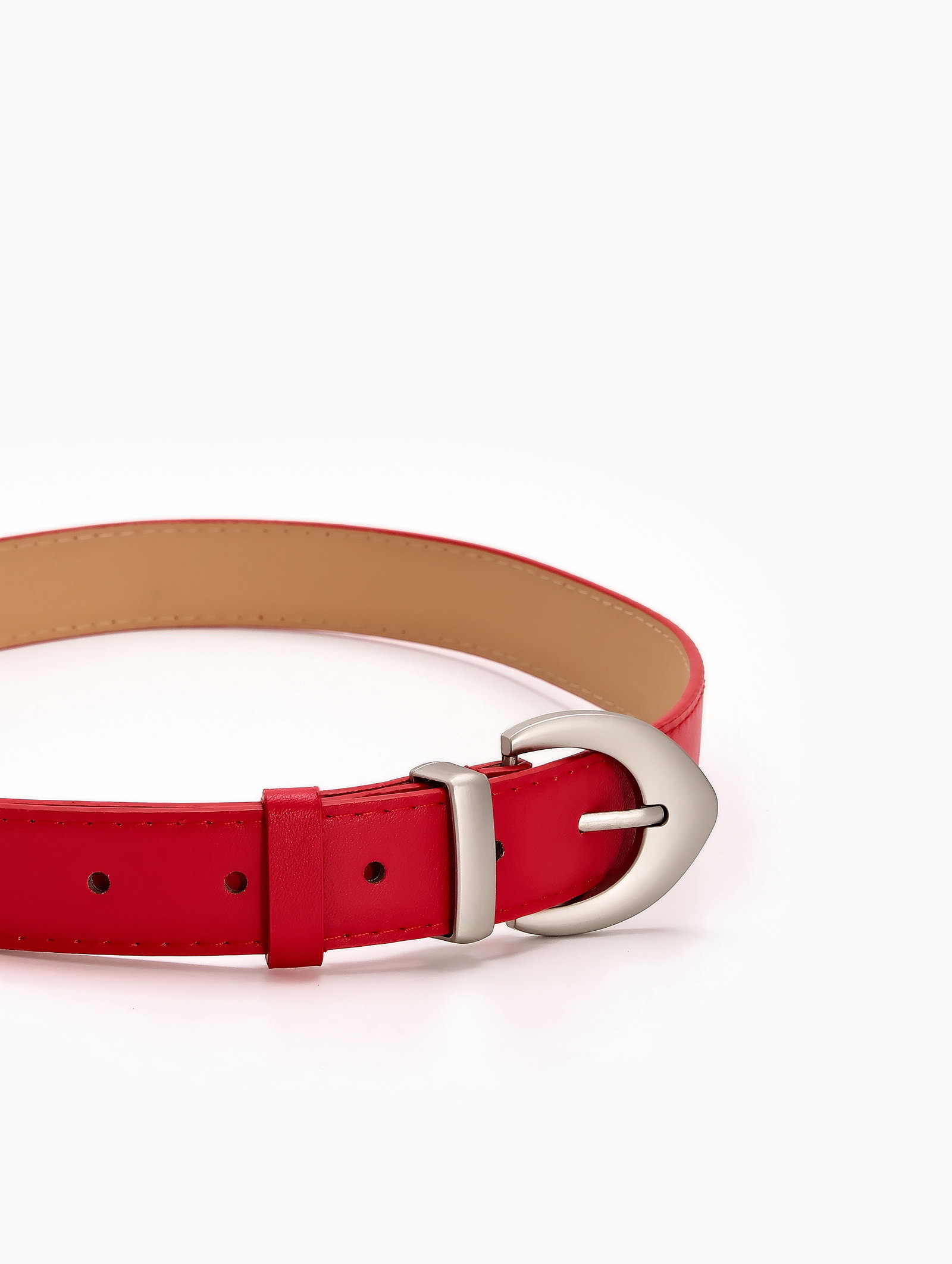 В повседневном образе Красный ремень сочетается с базовыми вещами нейтральных оттенков, добавляя энергию в монохромные комплекты. Он становится выразительным акцентом с джинсами, черными брюками или платьем-футляром. Матовая пряжка создает современный контраст, а одно отверстие регулировки помогает найти удобное положение. | ||