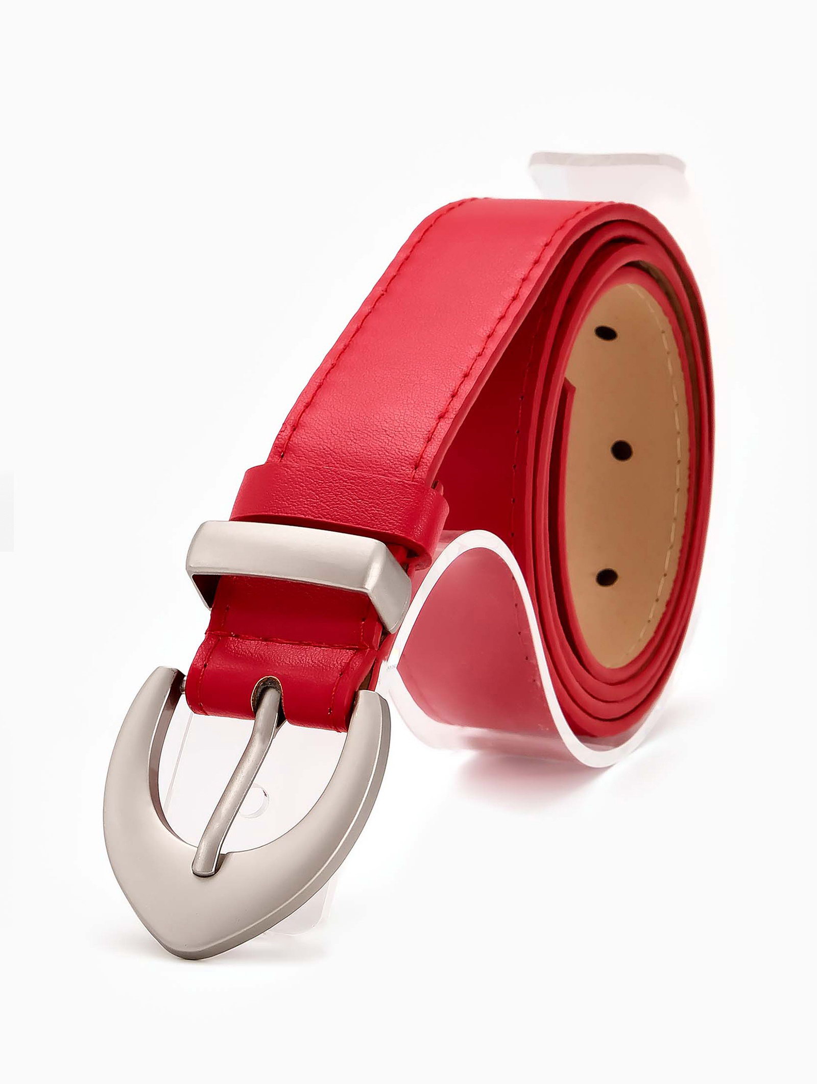 Ремень женский, 110x3 см, пряжка металл матовая, серебристая, красный, 3x110x0.2 см., Китай