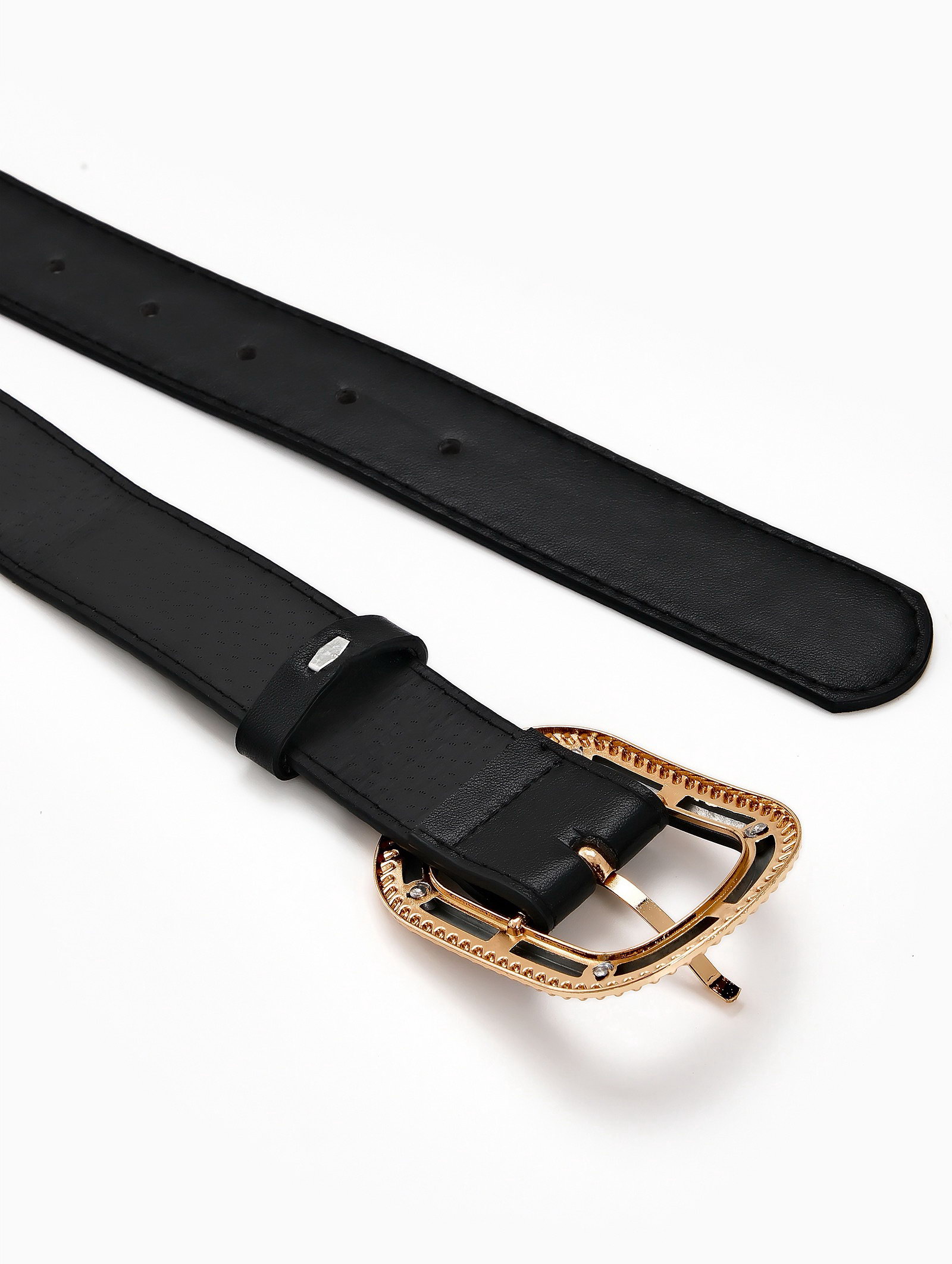 Размер упаковки: 5 x 5.5 x 11 см. tnved: 3926200000 Цвет: Чёрный Люверс: Нет Вид упаковки: Пакет Цвет пряжки: Золотой Вид пряжки: Один прокол Для кого: Для женщины Длина ремня, см: 110 Вид аксессуара: Ремень Ширина ремня, см: 2.6-3.0 Черный женский ремень с комбинированной пряжкой создает элегантный акцент в повседневных и вечерних образах. Сочетание золотого и пластикового элементов в пряжке добавляет современное звучание классическому силуэту. Ширина 3 см мягко подчеркивает талию, сохраняя удобство при длительном ношении. Особенности