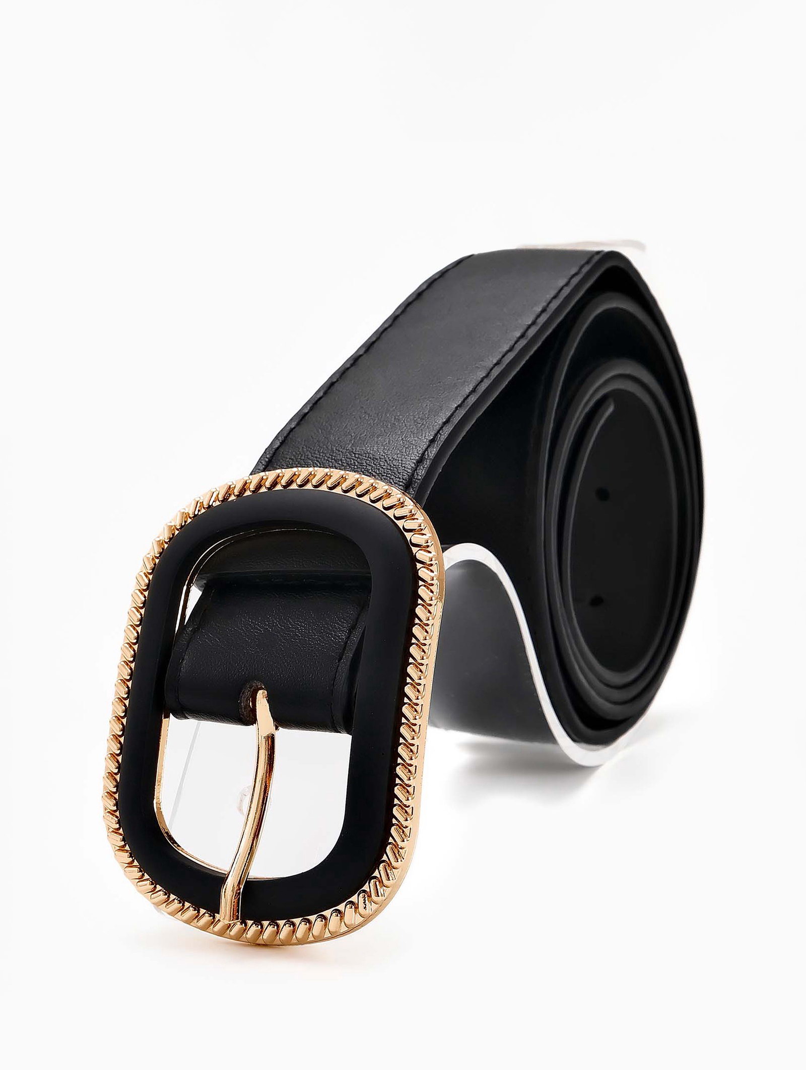 Размер упаковки: 5 x 5.5 x 11 см. tnved: 3926200000 Цвет: Чёрный Люверс: Нет Цвет пряжки: Золотой Для кого: Для женщины Вид упаковки: Пакет Вид пряжки: Один прокол Длина ремня, см: 110 Вид аксессуара: Ремень Ширина ремня, см: 2.6-3.0 Черный женский ремень с комбинированной пряжкой создает элегантный акцент в повседневных и вечерних образах. Сочетание золотого и пластикового элементов в пряжке добавляет современное звучание классическому силуэту. Ширина 3 см мягко подчеркивает талию, сохраняя удобство при длительном ношении. Особенности