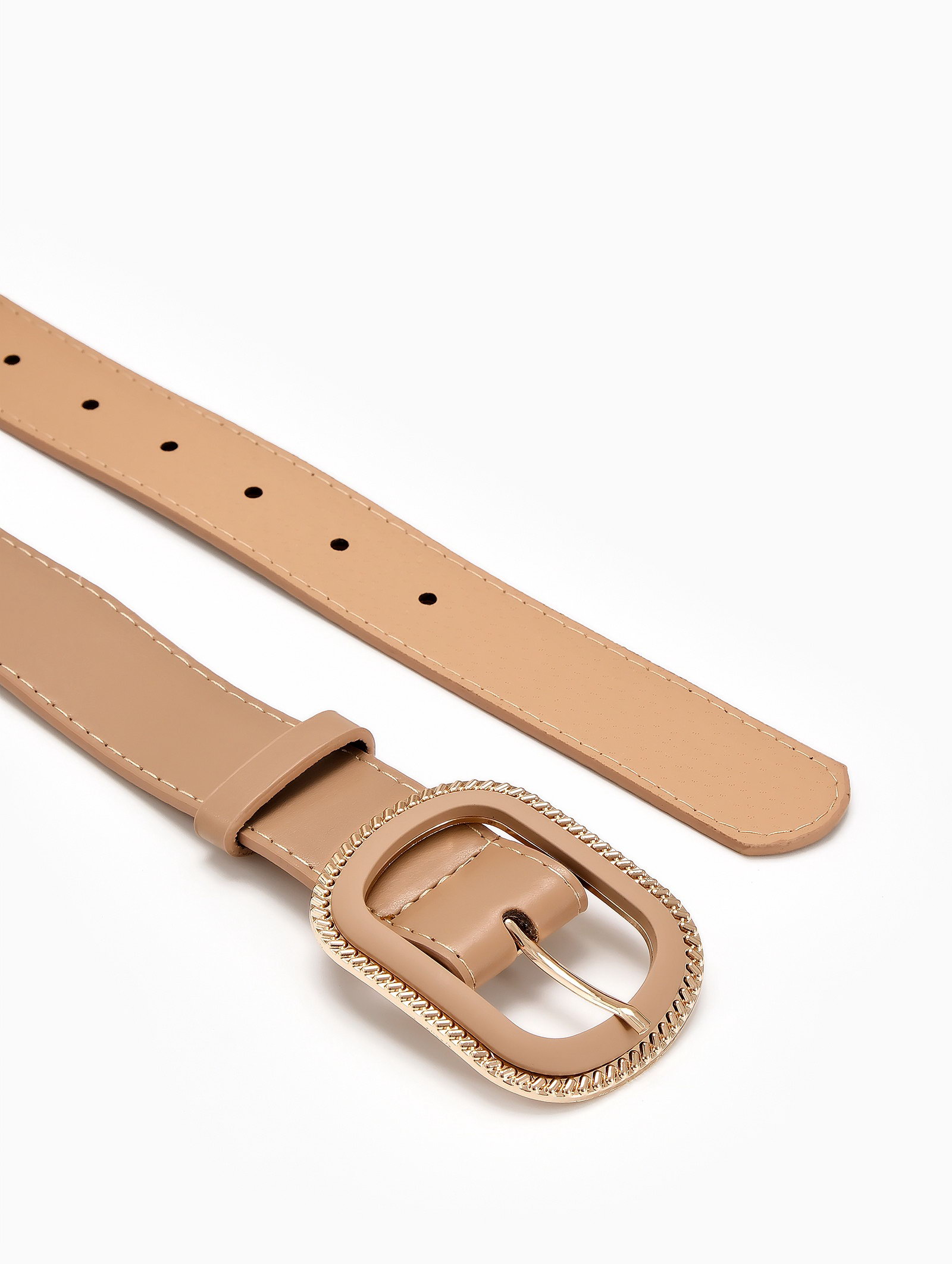 Размер упаковки: 5.5 x 1 x 111.5 см. tnved: 3926200000 Цвет: Бежевый Люверс: Нет Вид упаковки: Пакет Вид пряжки: Один прокол Цвет пряжки: Золотой Для кого: Для женщины Длина ремня, см: 110 Вид аксессуара: Ремень Ширина ремня, см: 2.6-3.0 Бежевый женский ремень с комбинированной пряжкой легко становится частью вашего повседневного гардероба. Нейтральный цвет сочетается с разными оттенками одежды, а золотой акцент на пряжке добавляет теплый оттенок. Ширина 3 см мягко определяет линию талии, сохраняя комфорт в течение дня. Особенности