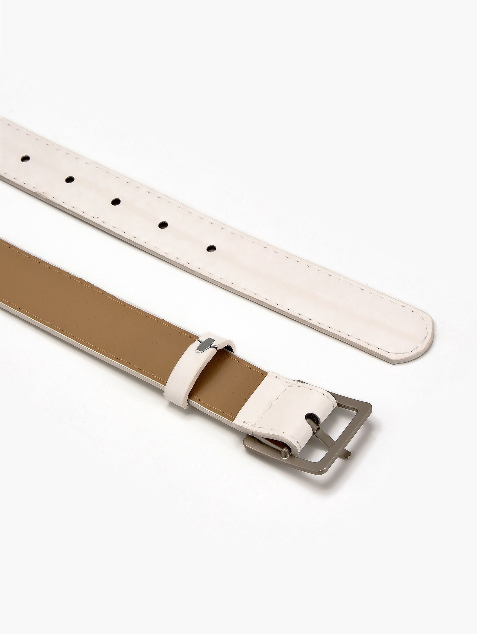 В повседневном гардеробе Белый ремень освежает летние платья, светлые брюки и джинсовые комплекты. Он становится связующим элементом между разными предметами одежды, сохраняя легкость восприятия. Одно отверстие на пряжке помогает найти удобное положение, а матовая поверхность создает сдержанный акцент в холодной гамме. | ||