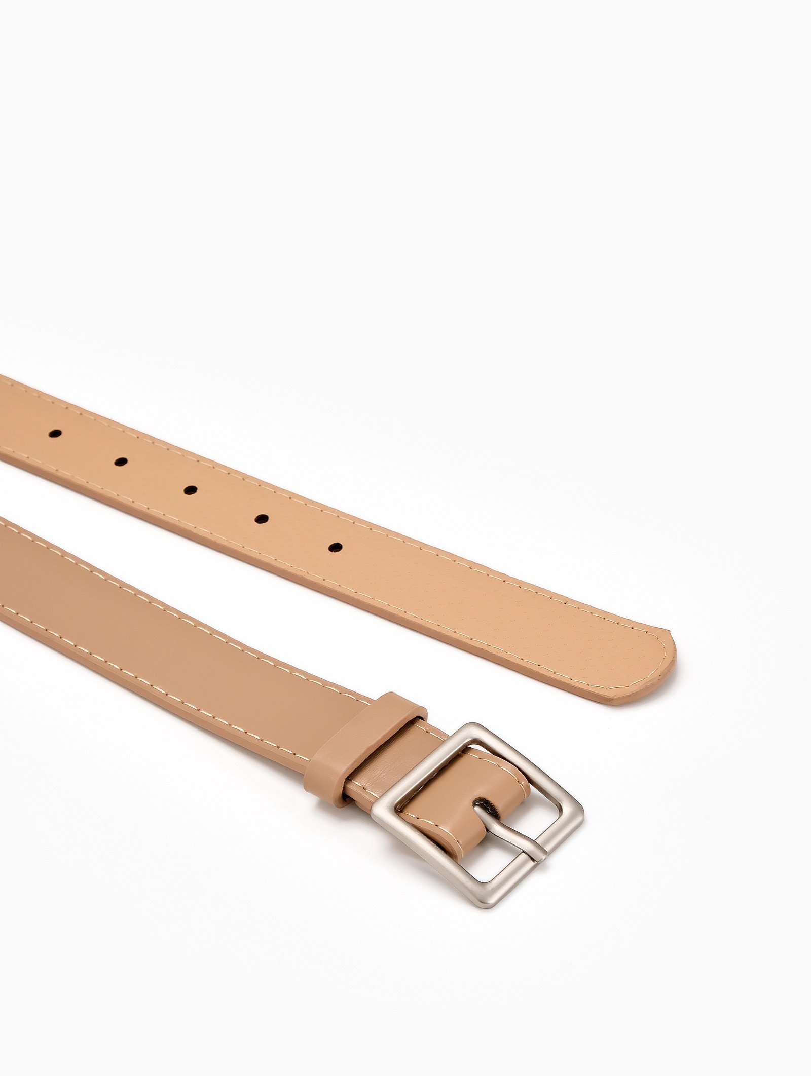 Размер упаковки: 3.7 x 1 x 110 см. tnved: 3926200000 Цвет: Бежевый Люверс: Нет Длина ремня, см: 110 Для кого: Для женщины Вид упаковки: Пакет Цвет пряжки: Серебряный Вид пряжки: Один прокол Вид аксессуара: Ремень Ширина ремня, см: 2.6-3.0 Бежевый женский ремень с матовой серебряной пряжкой легко сочетается с разными оттенками в гардеробе. Нейтральный цвет создает плавный переход между элементами образа, а матовая фурнитура добавляет современный акцент. Ширина 3 см мягко подчеркивает талию, сохраняя комфорт при повседневной носке. Особенности