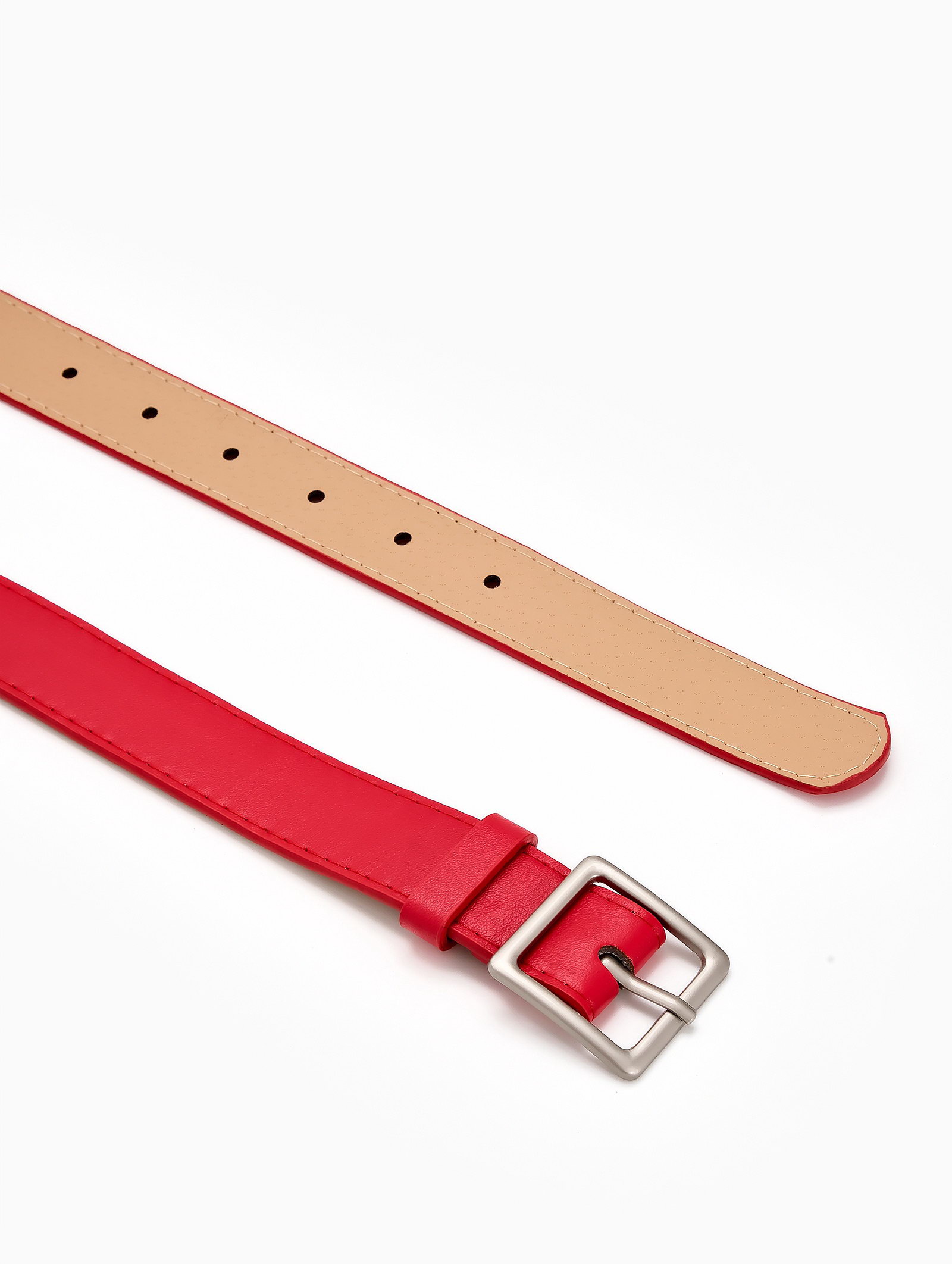 В вашем образе Красный ремень становится ярким акцентом в монохромных комплектах и вечерних нарядах. Он сочетается с базовыми вещами нейтральных оттенков, добавляя образу энергию и характер. Матовая пряжка создает современный контраст, а одно отверстие регулировки помогает найти удобное положение для ежедневного использования. | ||