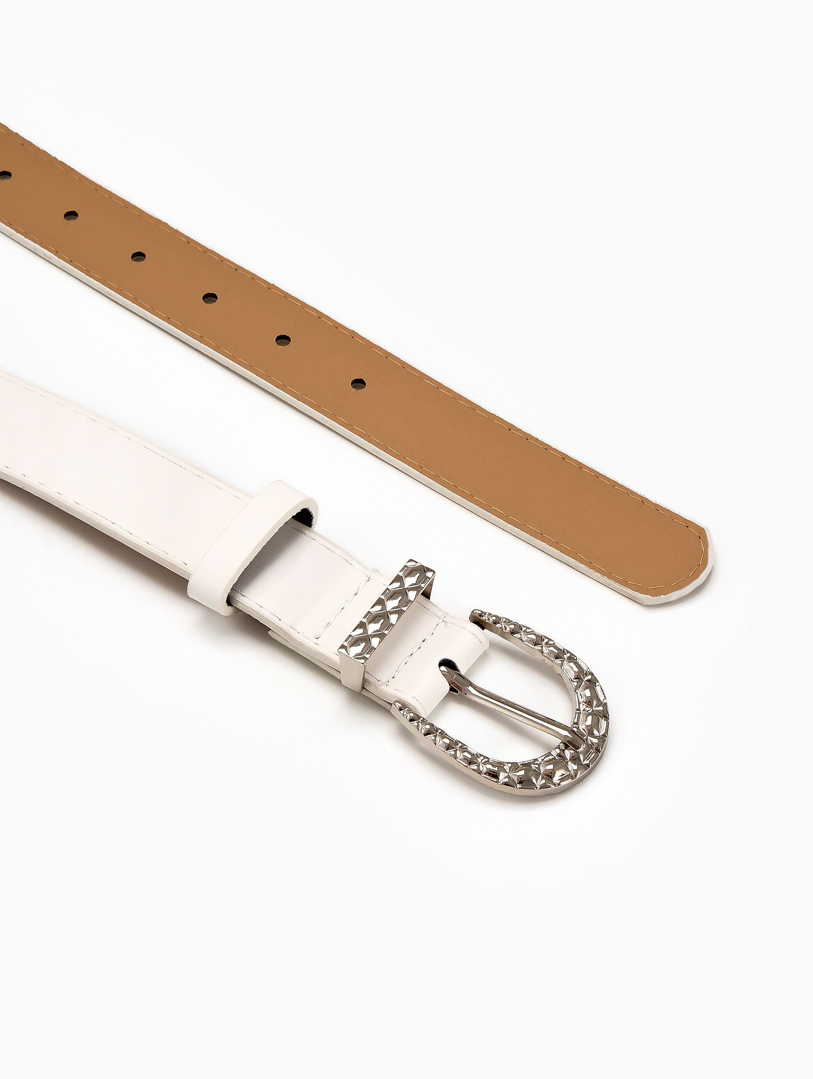 Ремень женский, 110x3 см, пряжка металл, серебристая, белый, 3x110x0.2 см., Китай