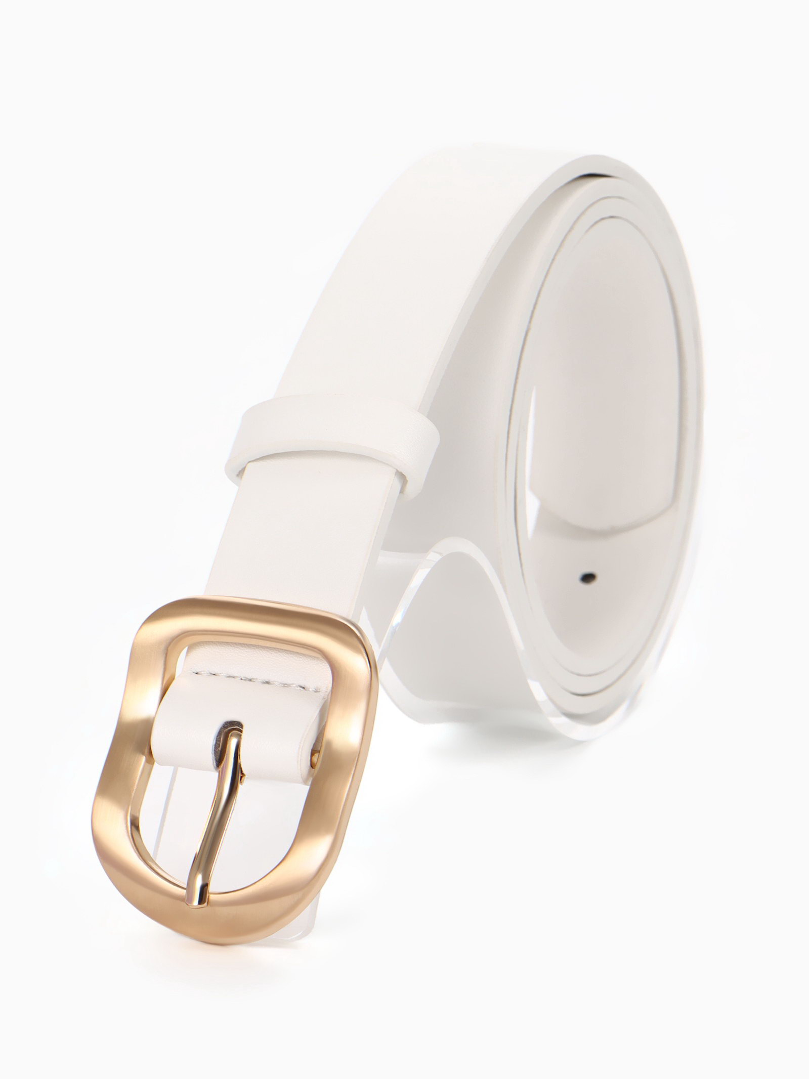 Ремень женский, 2.7x105 см, золотистая пряжка, 1 прокол, белый, 2.7x105x0.2 см., Китай