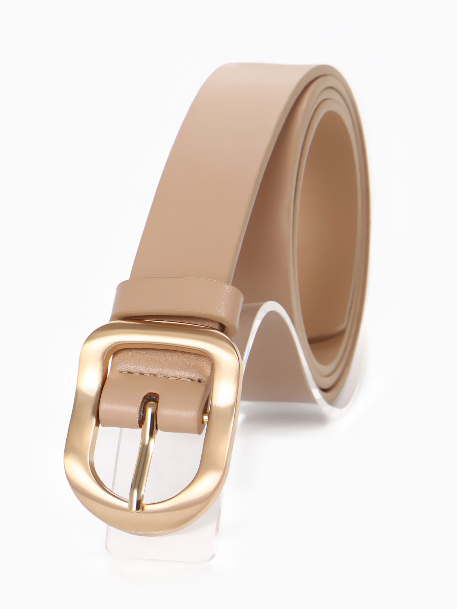 Ремень женский, 2.7x105 см, золотистая пряжка, 1 прокол, бежевый, 2.7x105x0.2 см., Китай