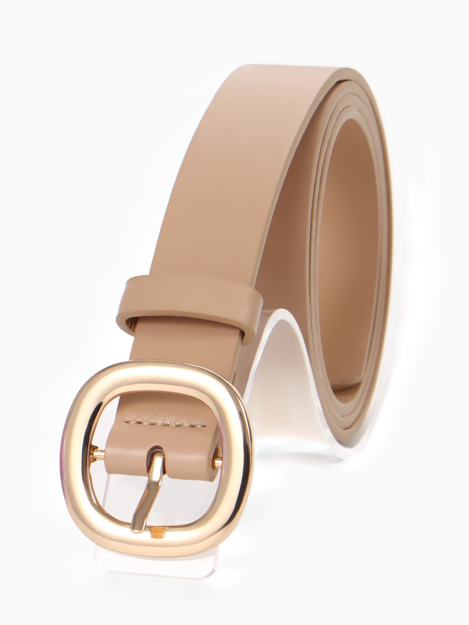 Ремень женский, 2.8x105 см, 1 прокол, золотистая пряжка, бежевый, 2.8x105x0.2 см., Китай