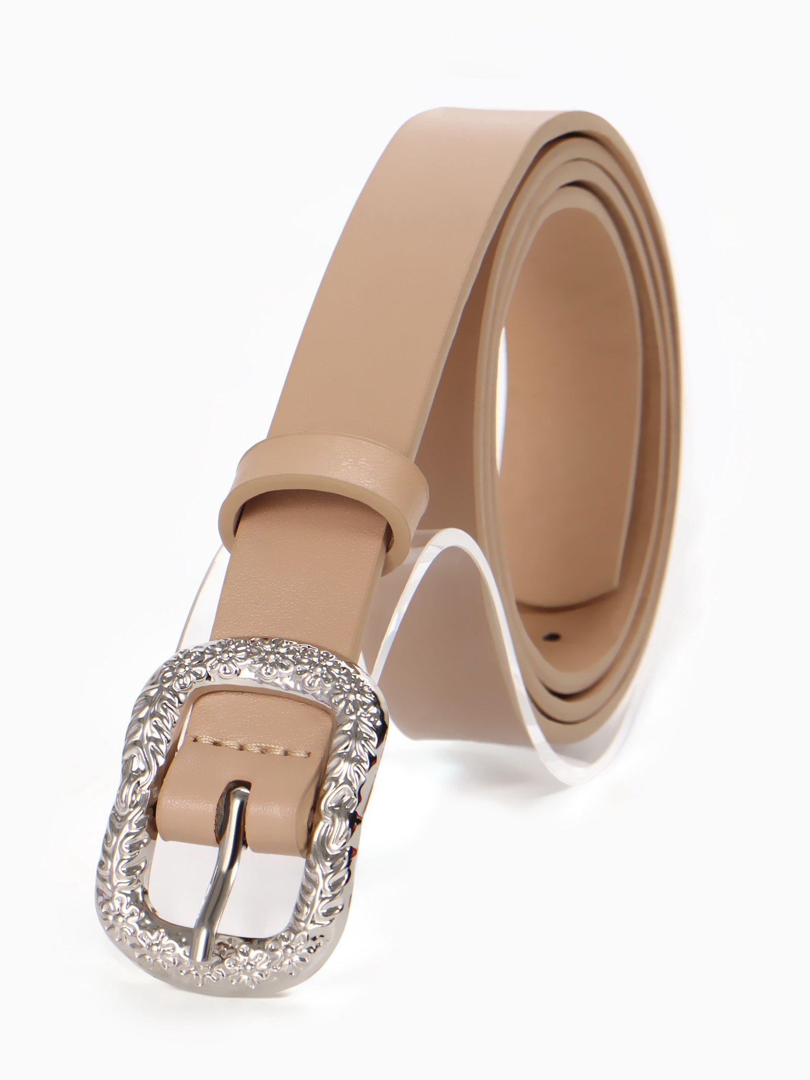 Ремень женский, металлическая пряжка, 2.3x105 см, бежевый, 2.3x105x0.2 см., Китай