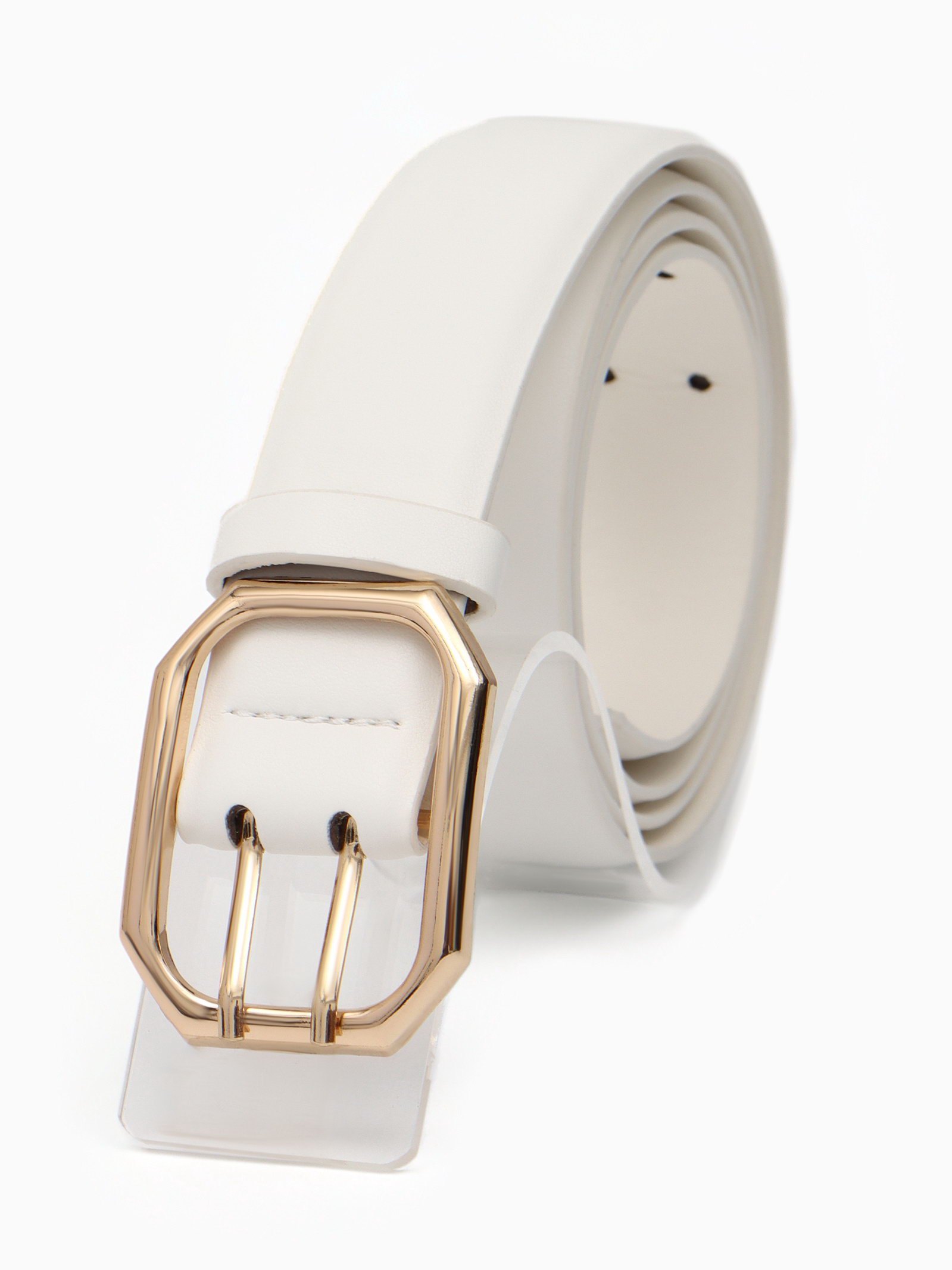Ремень женский, 3.5x110 см, 2 прокола, без винта, золотистая пряжка, белый, 3.5x110x0.3 см., Китай
