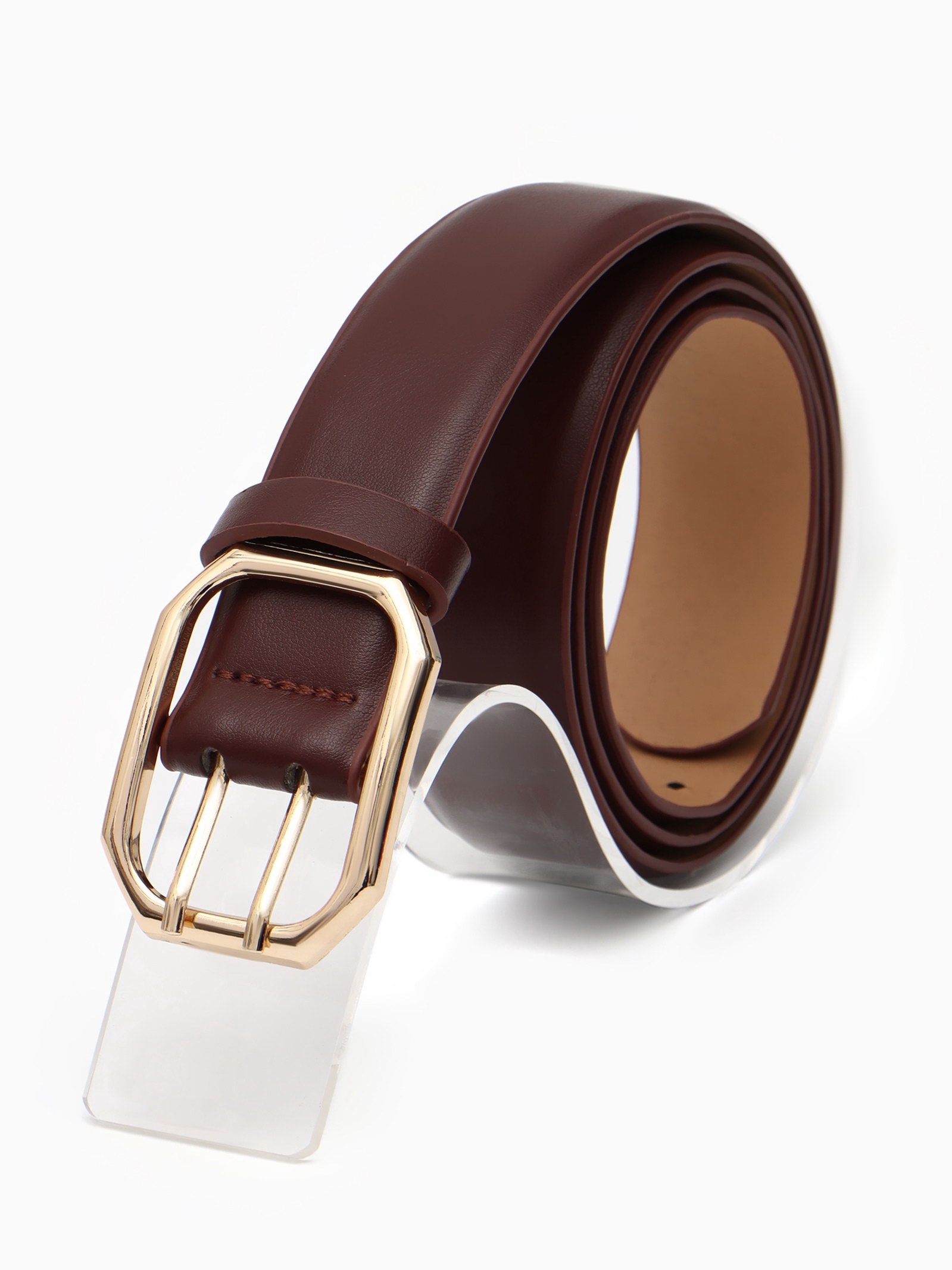 Ремень женский, 3.5x110 см, 2 прокола, без винта, золотистая пряжка, коричневый, 3.5x110x0.3 см., Китай