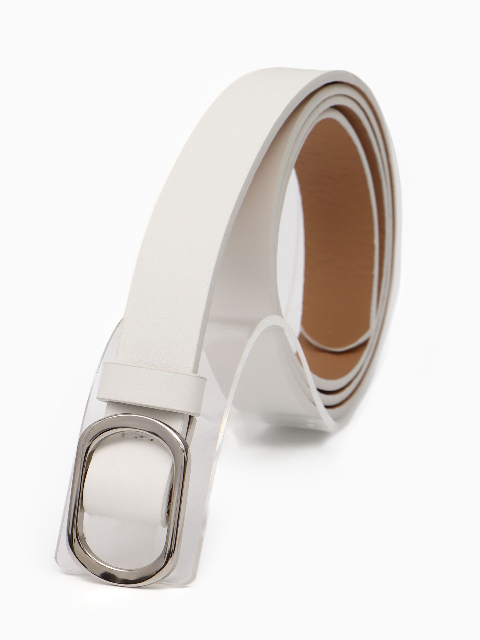 Ремень женский, затяжка, 2.5x110 см, без винта, серебристая пряжка, белый, 2.5x110x0.3 см., Китай