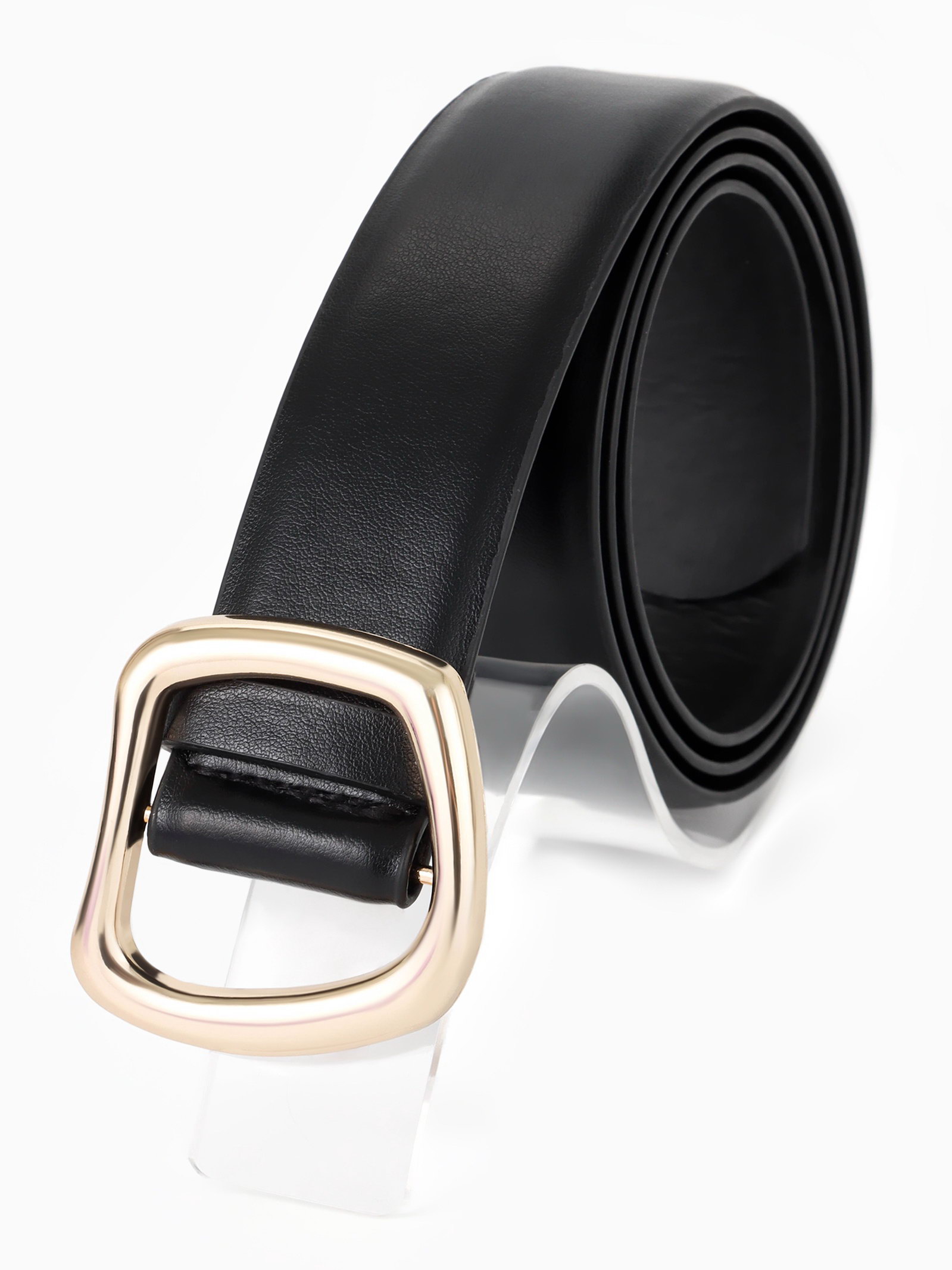Ремень женский, затяжка, без винта, 4x110 см, пряжка золотистая, чёрный, 4x110x0.3 см., Китай