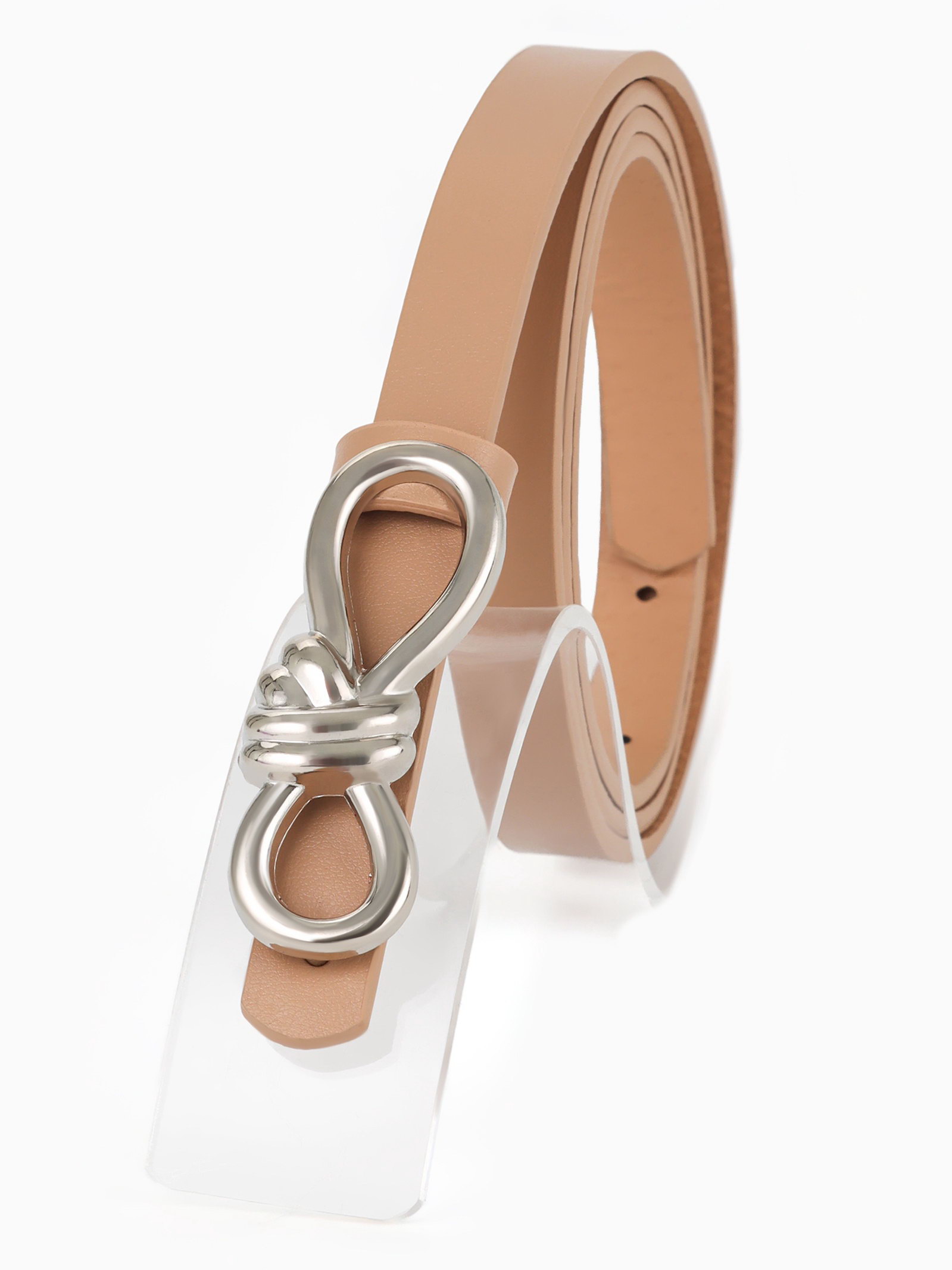 Ремень женский "Бант", серебристая пряжка, 1.5x110 см, гвоздик, бежевый, 1.5x110x0.3 см., Китай