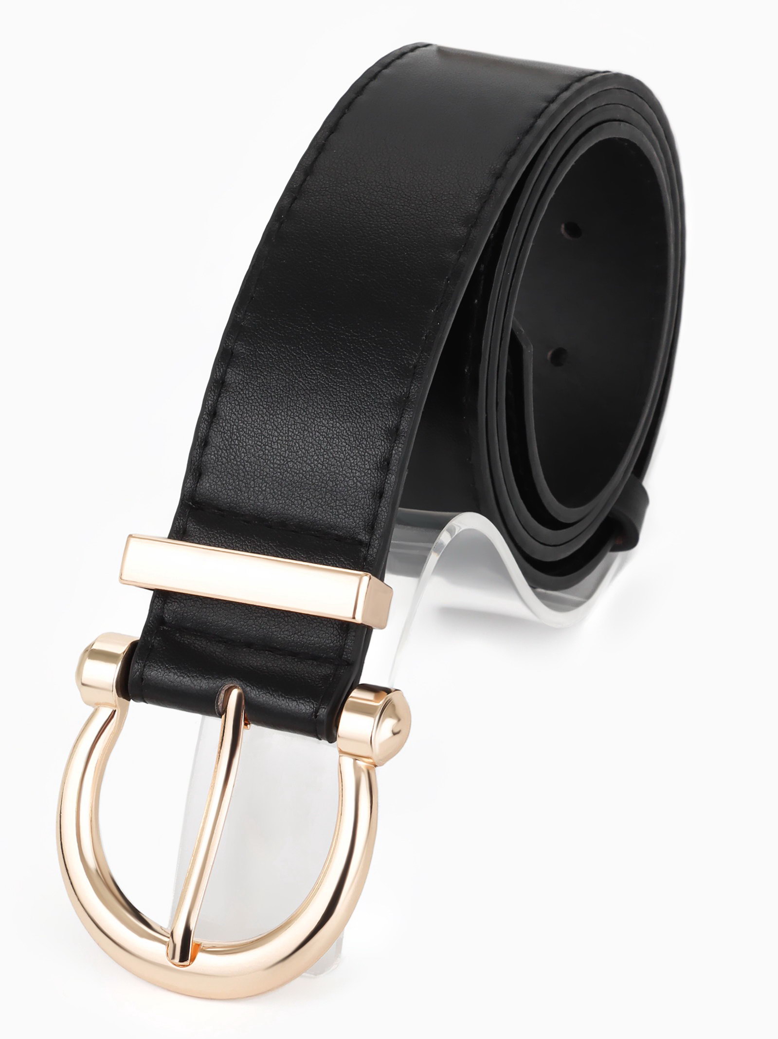 Ремень женский, 4x110 см, без винта, пряжка золотистая, 1 прокол, чёрный, 4x110x0.3 см., Китай