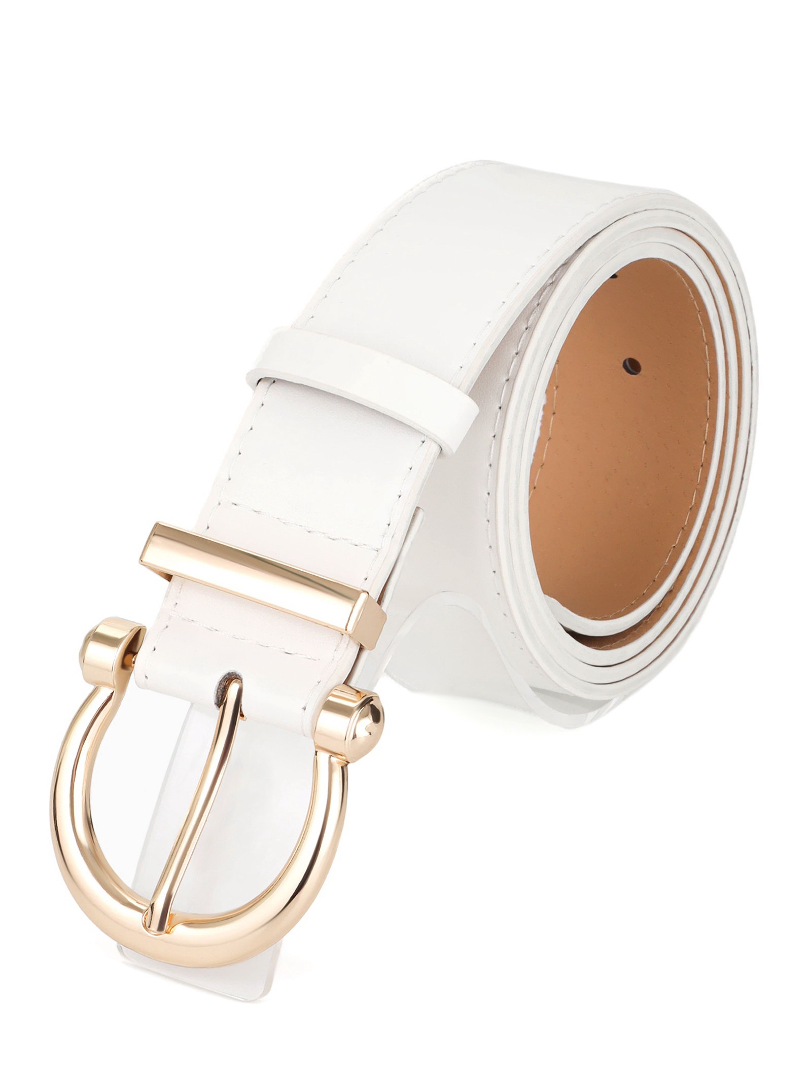 Ремень женский, 4x110 см, без винта, пряжка золотистая, 1 прокол, белый, 4x110x0.3 см., Китай