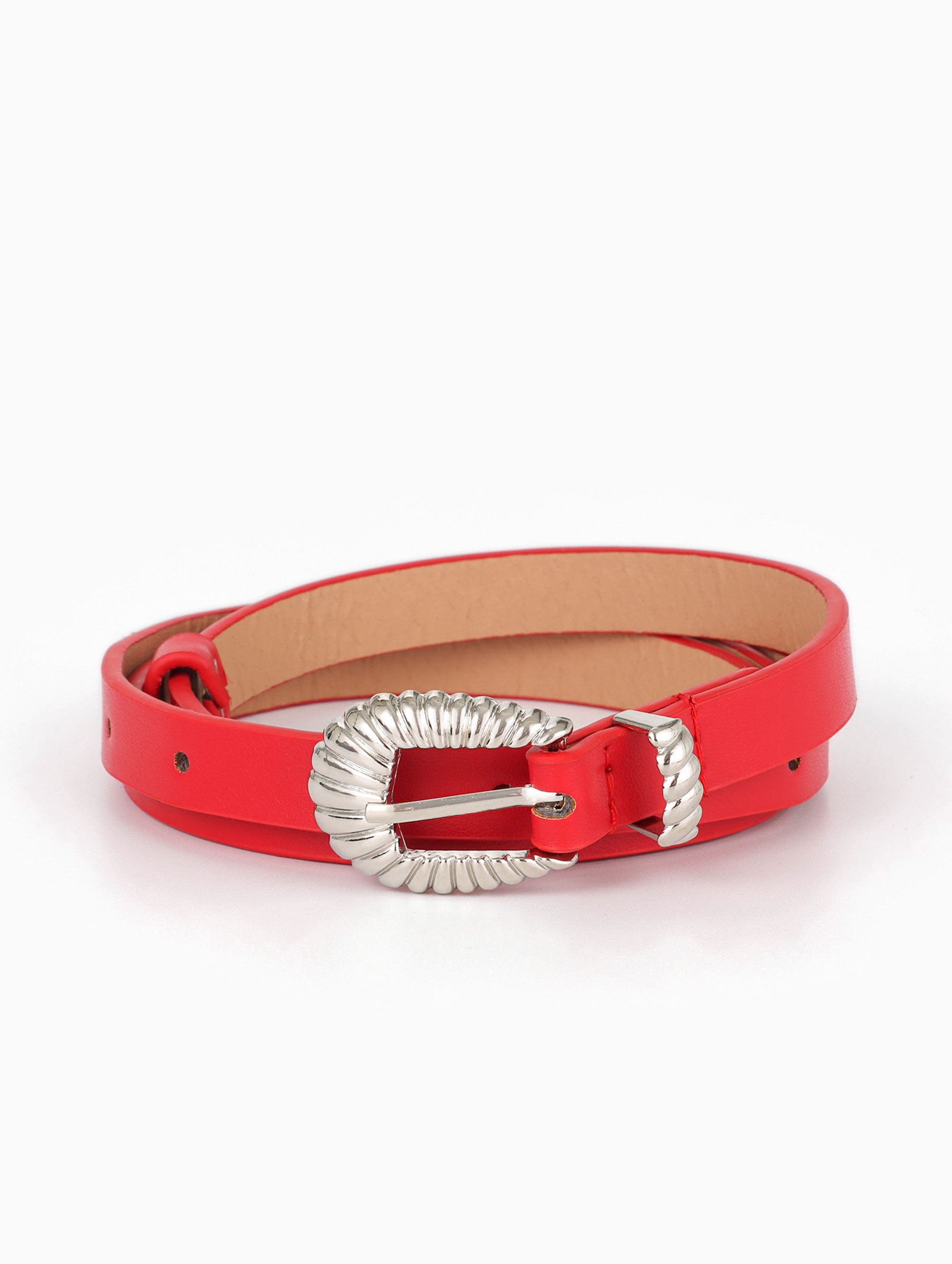 Ремень женский, без винта, 1.5x110 см, 1 прокол, пряжка серебро, красный, 1.5x110x0.3 см., Китай