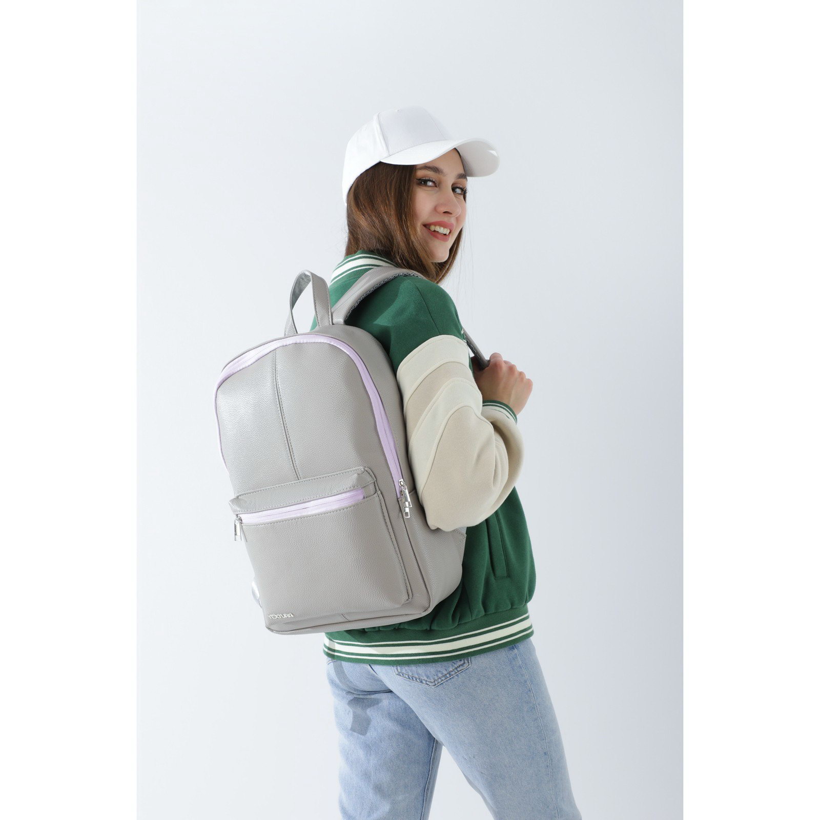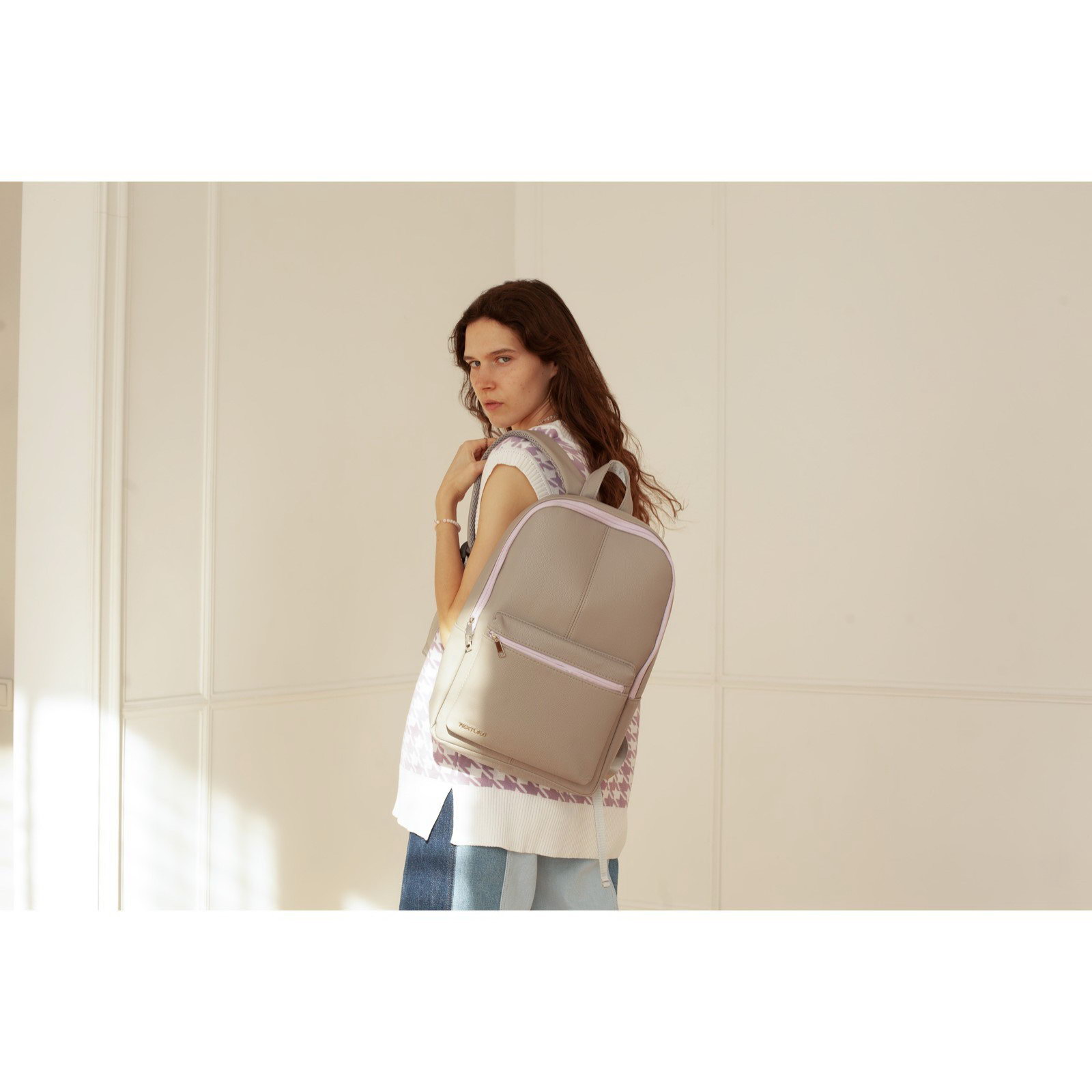 Рюкзак женский из искусственной кожи, цвет серый, 10x28x41 см., TEXTURA, Китай
