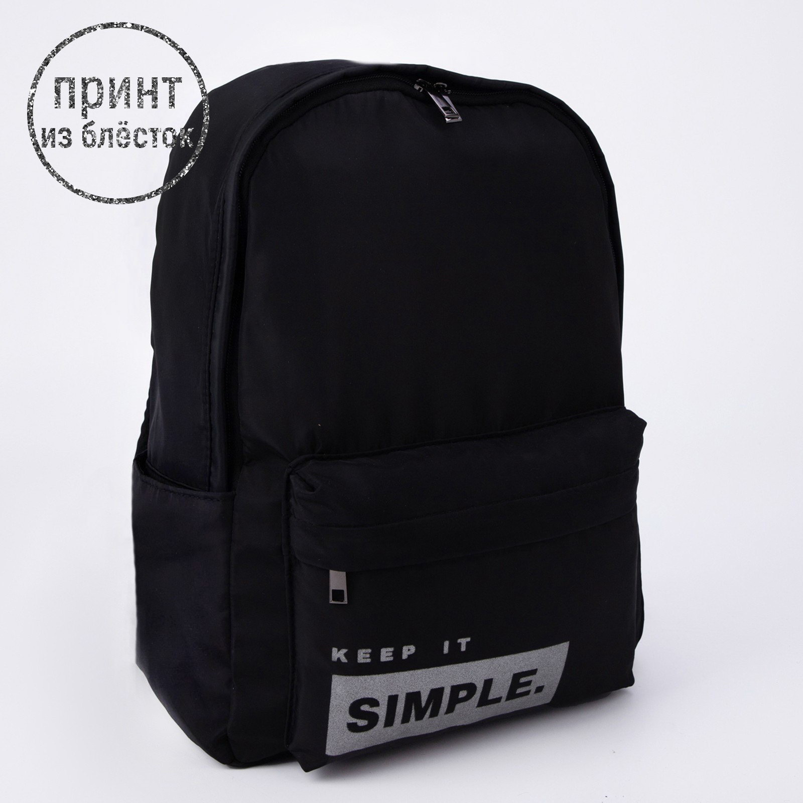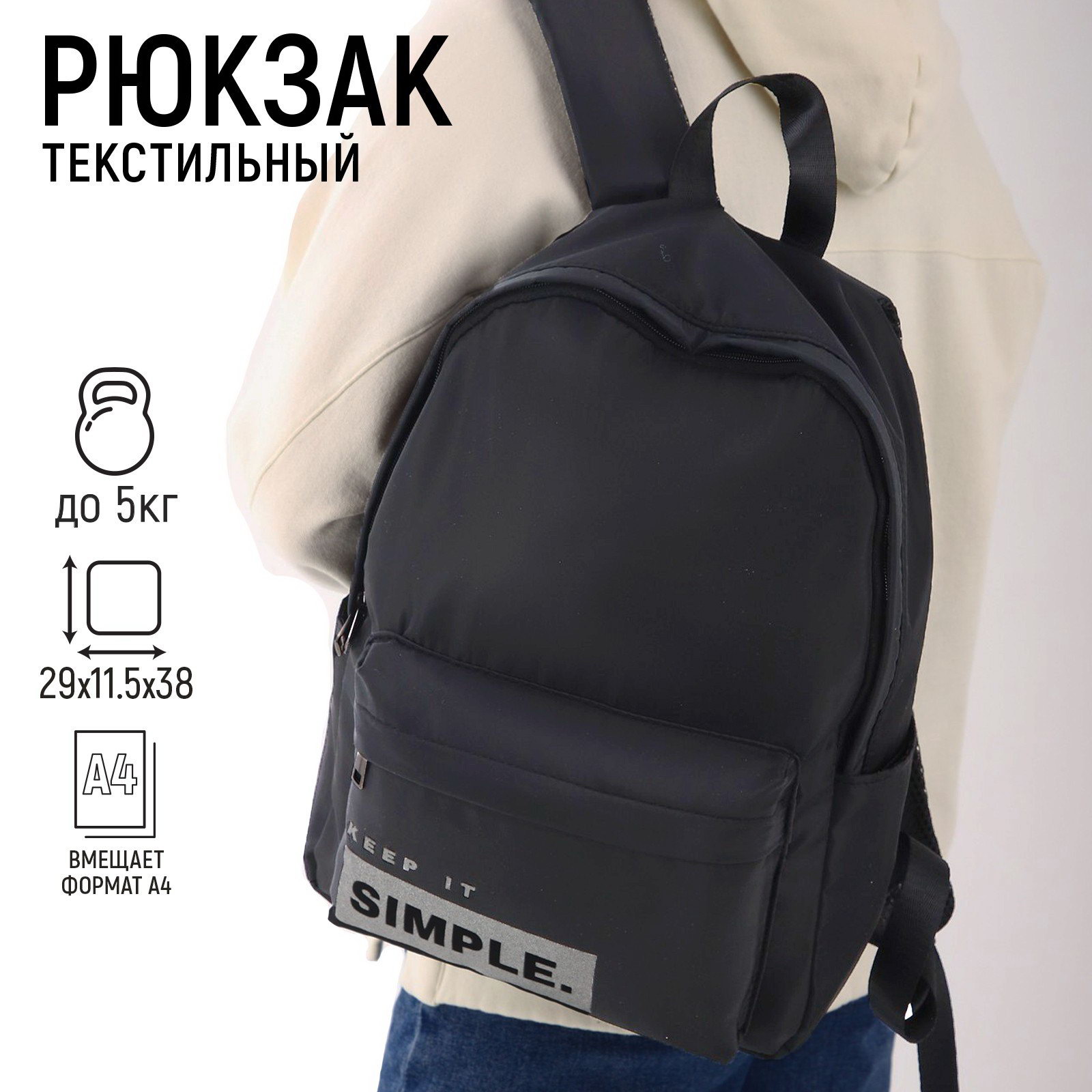 Рюкзак школьный текстильный SIMPLE, чёрный, 38x12x30 см, 11.5x29x38 см., NAZAMOK, Китай