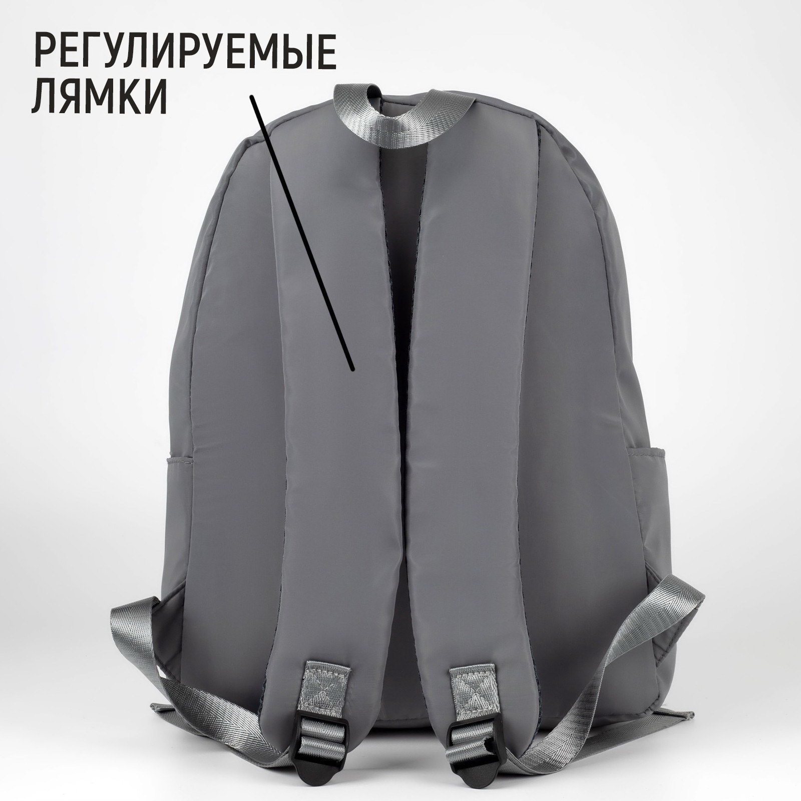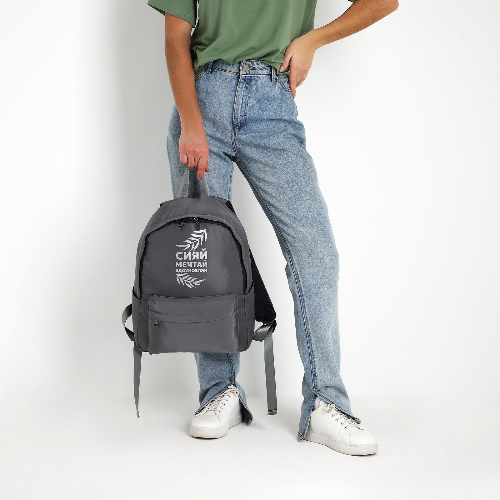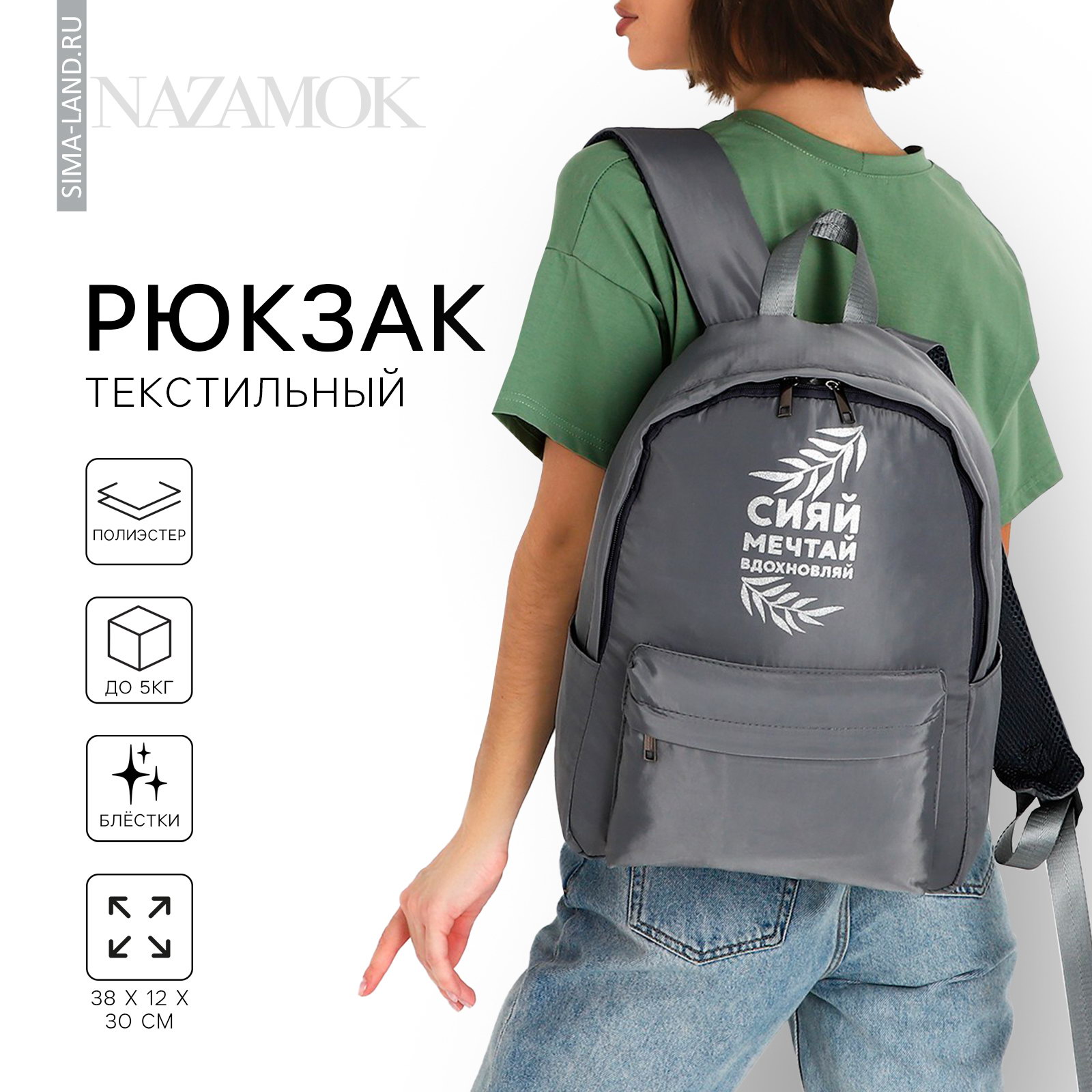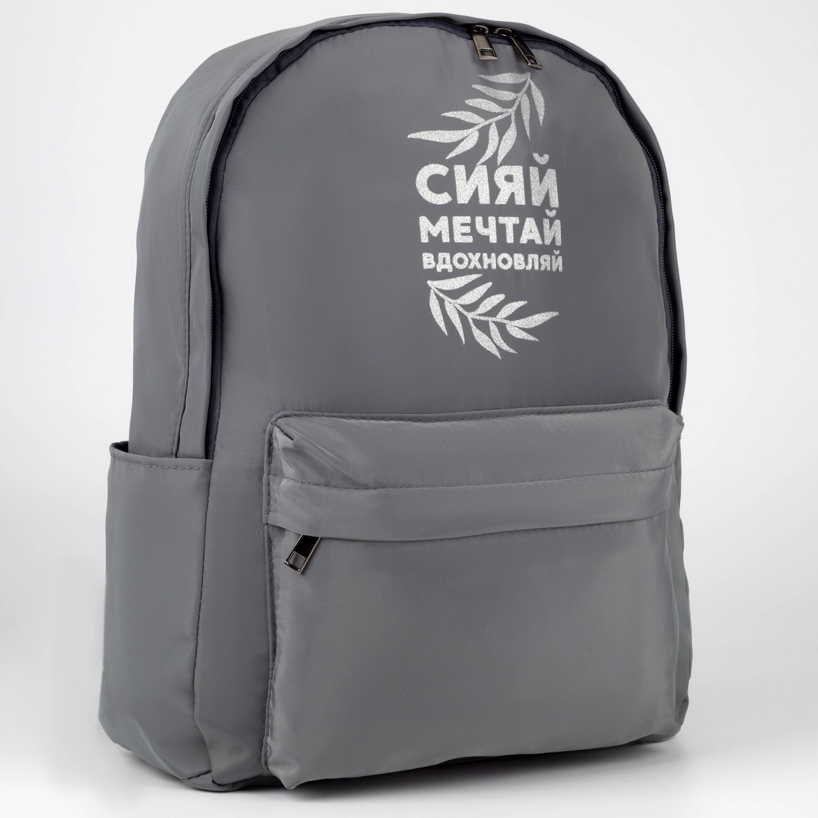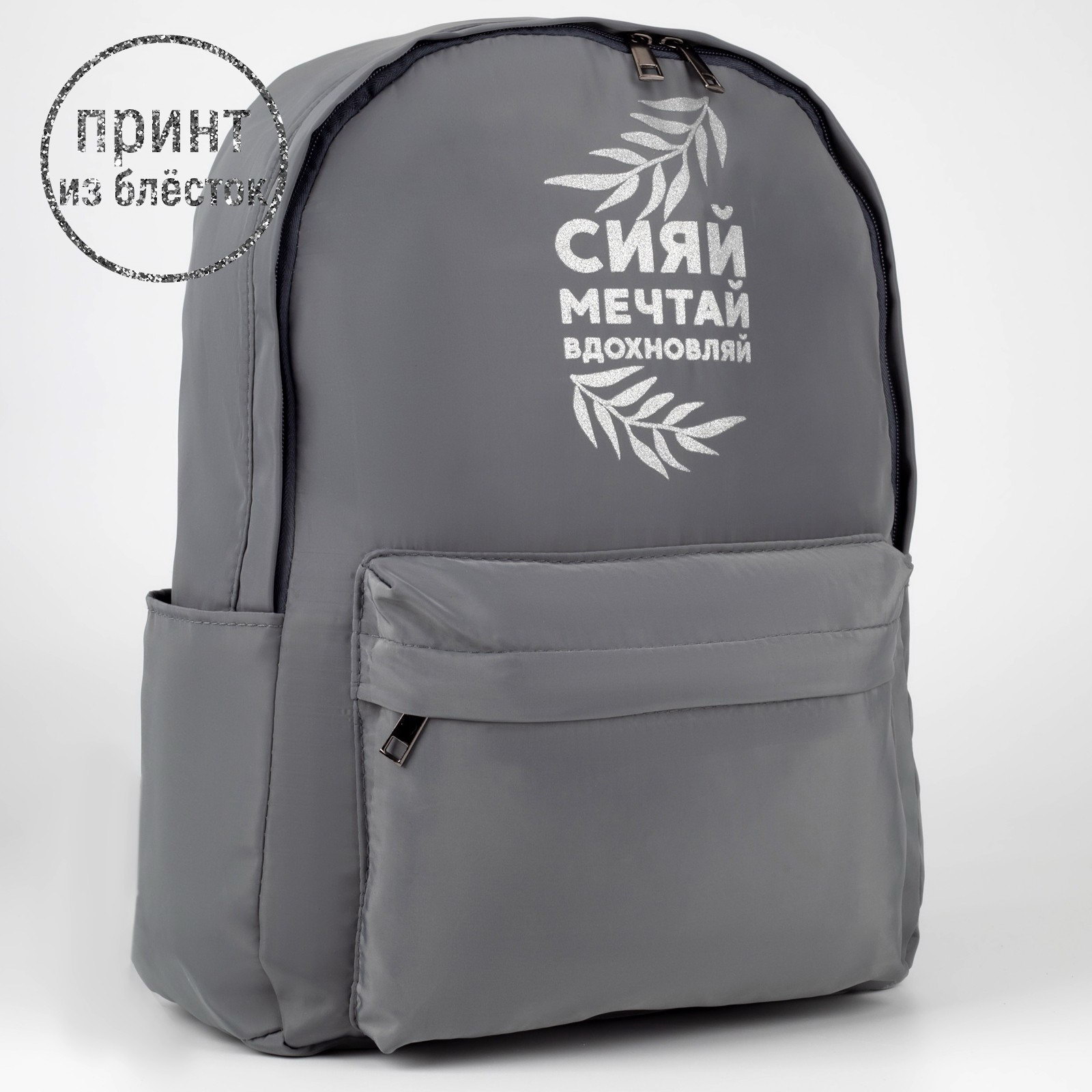 Рюкзак школьный текстильный "Сияй, мечтай, вдохновляй", серый, 38 x 12 x 30 см, 11.5x29x38 см., NAZAMOK, Китай