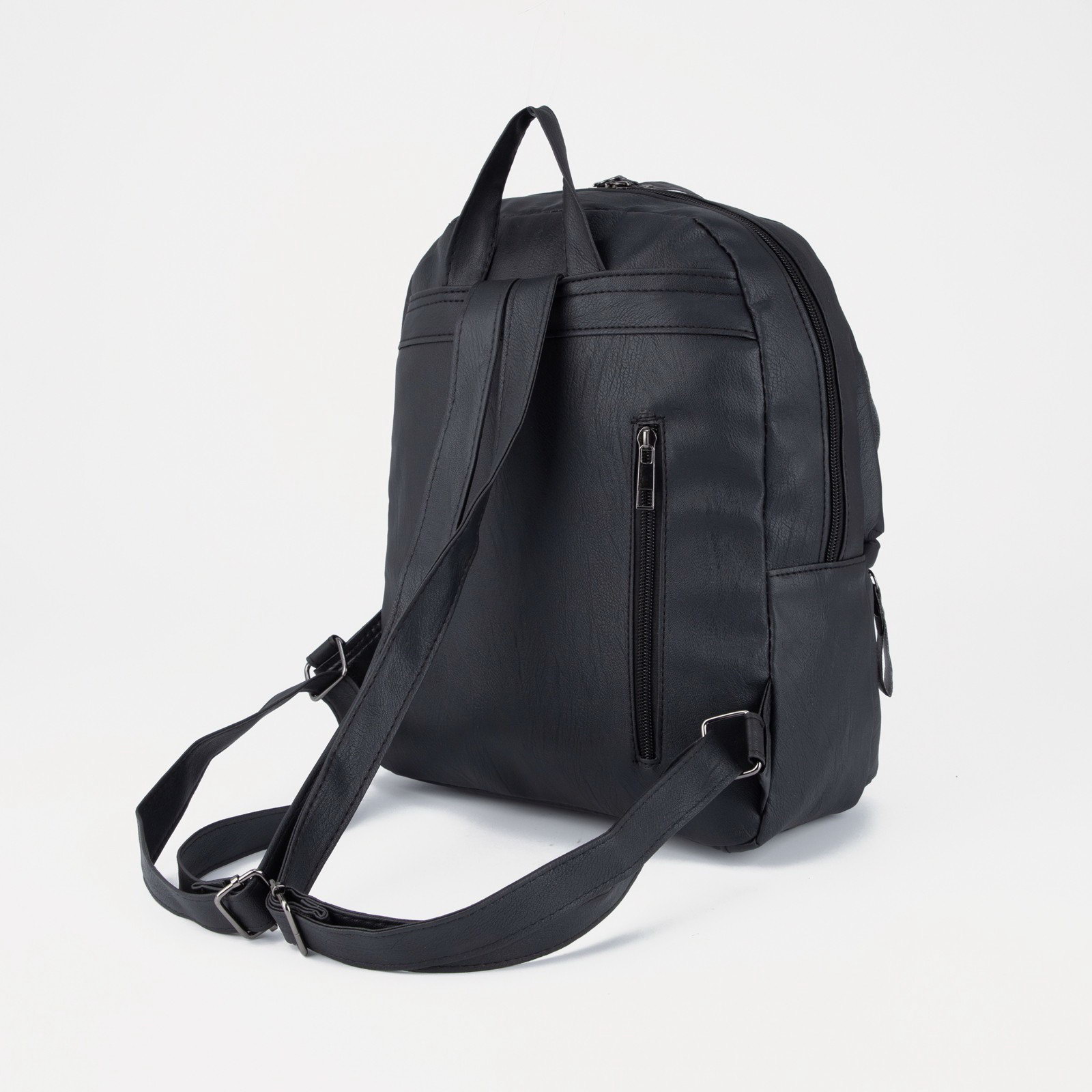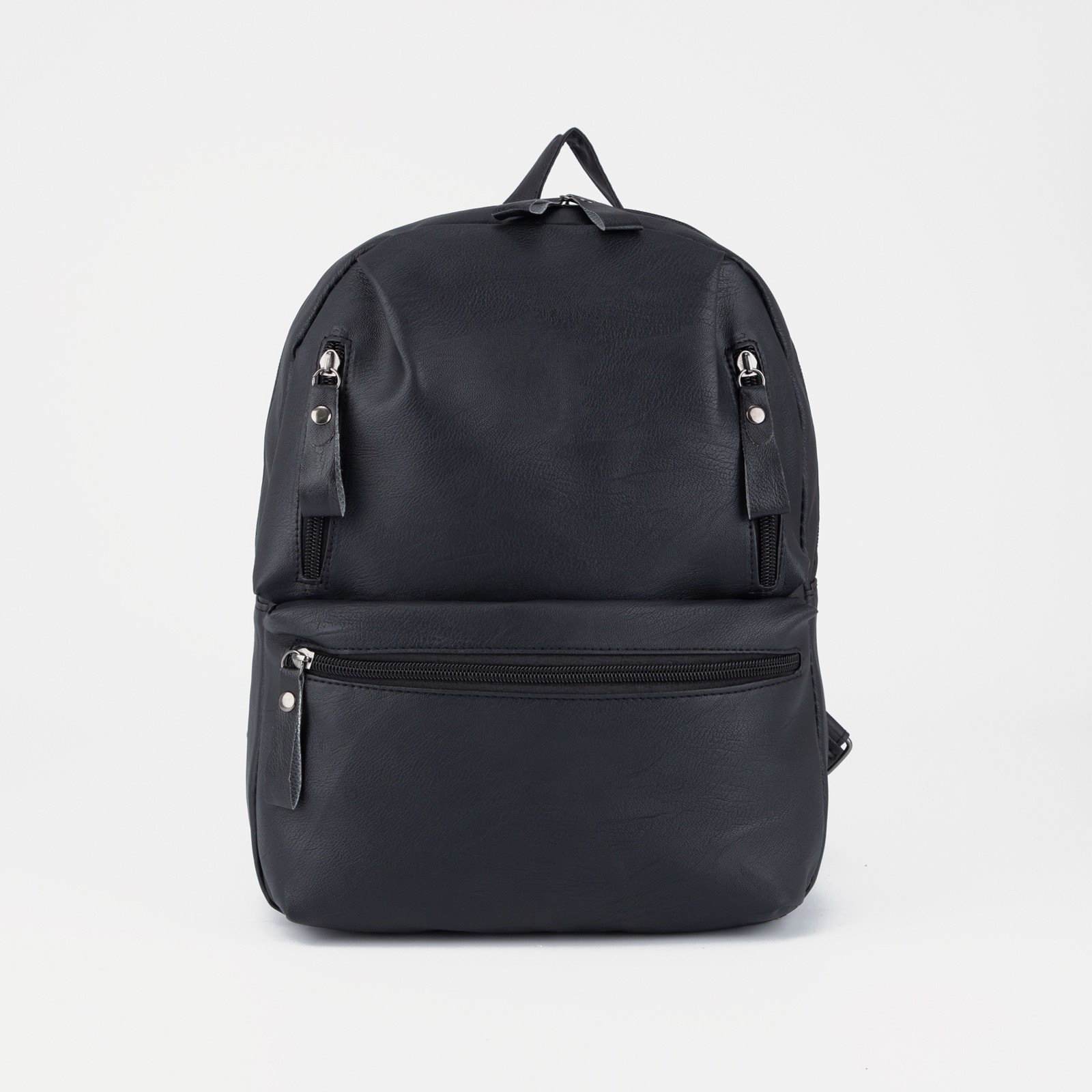 Рюкзак на молнии, 3 наружных кармана, чёрный, 10x30x35 см., Китай