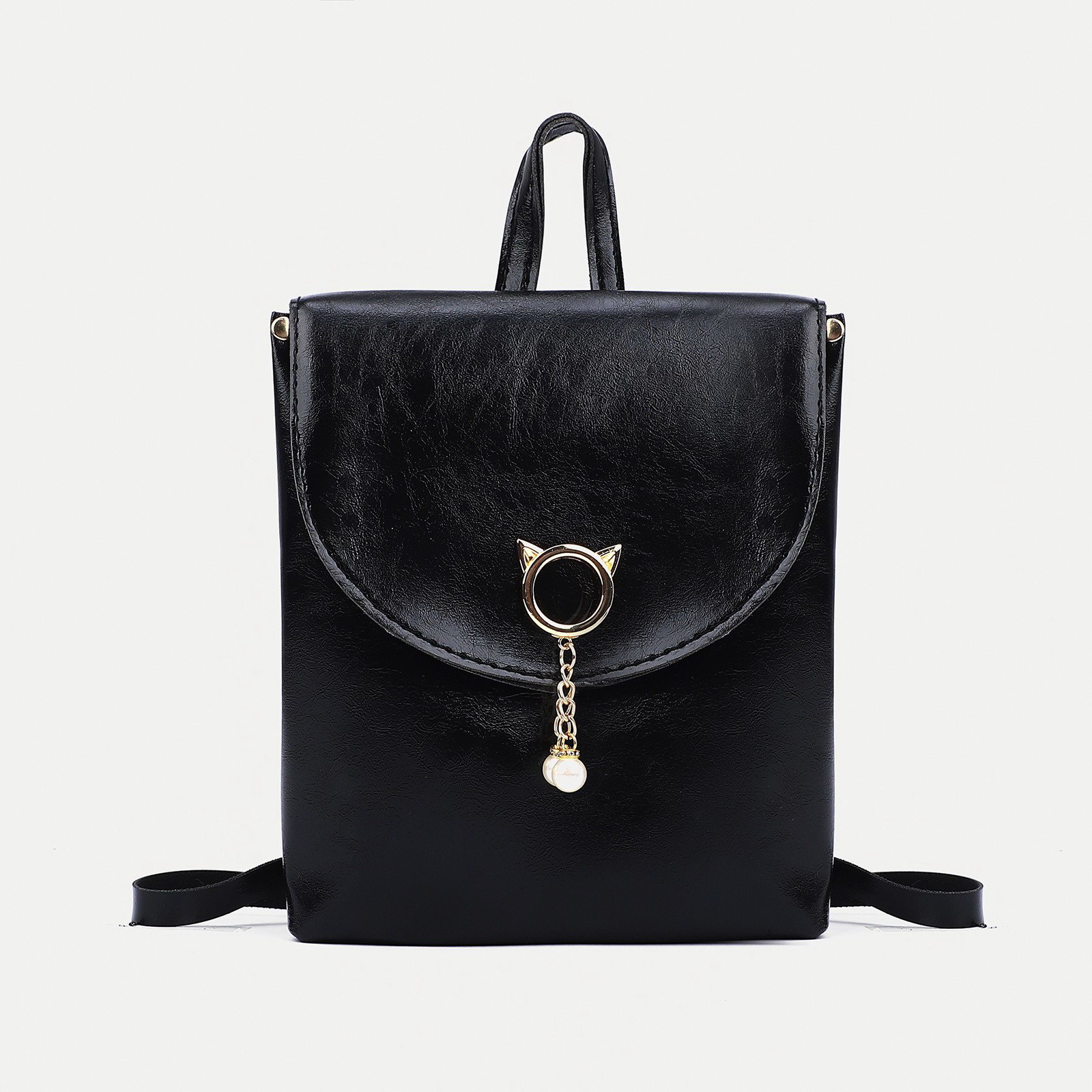 Рюкзак-мини из искусственной кожи на магните, цвет чёрный, 5.5x18.5x21.5 см., Китай