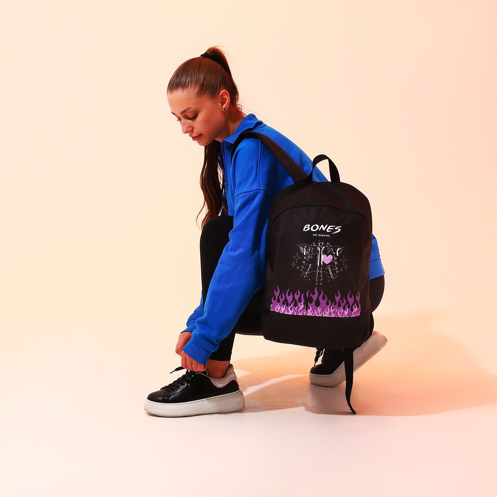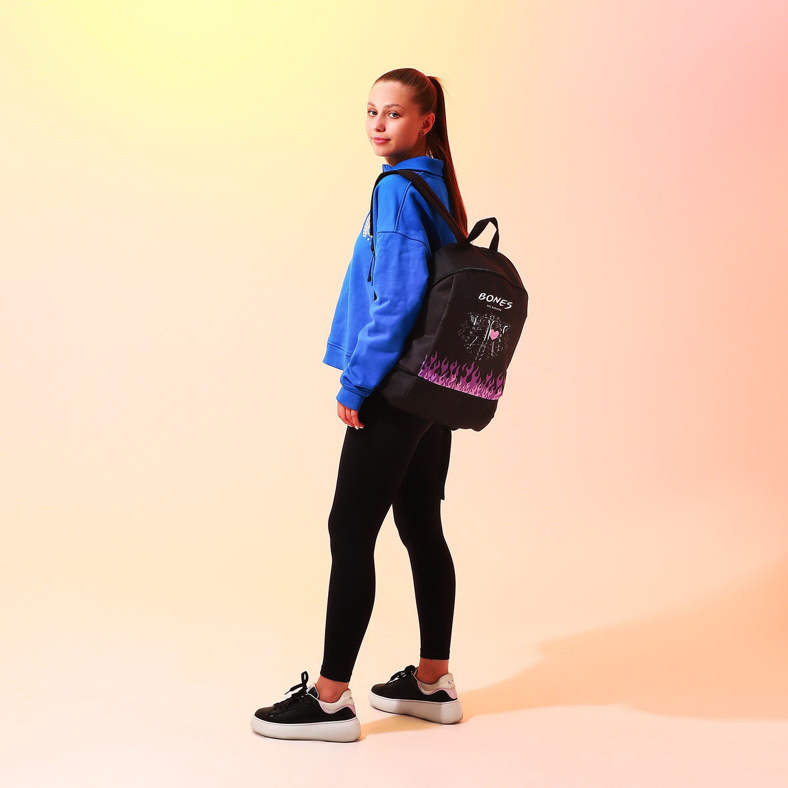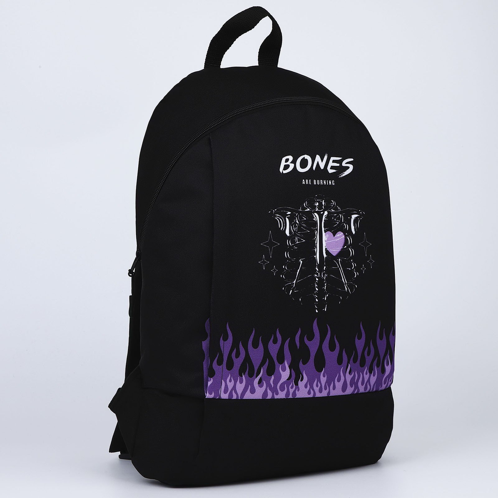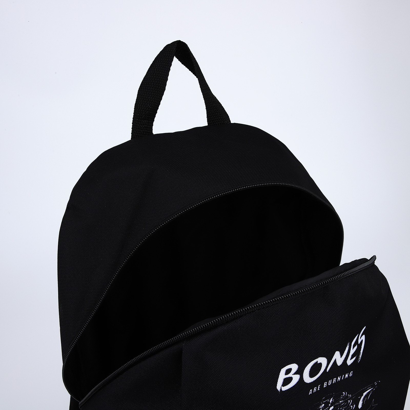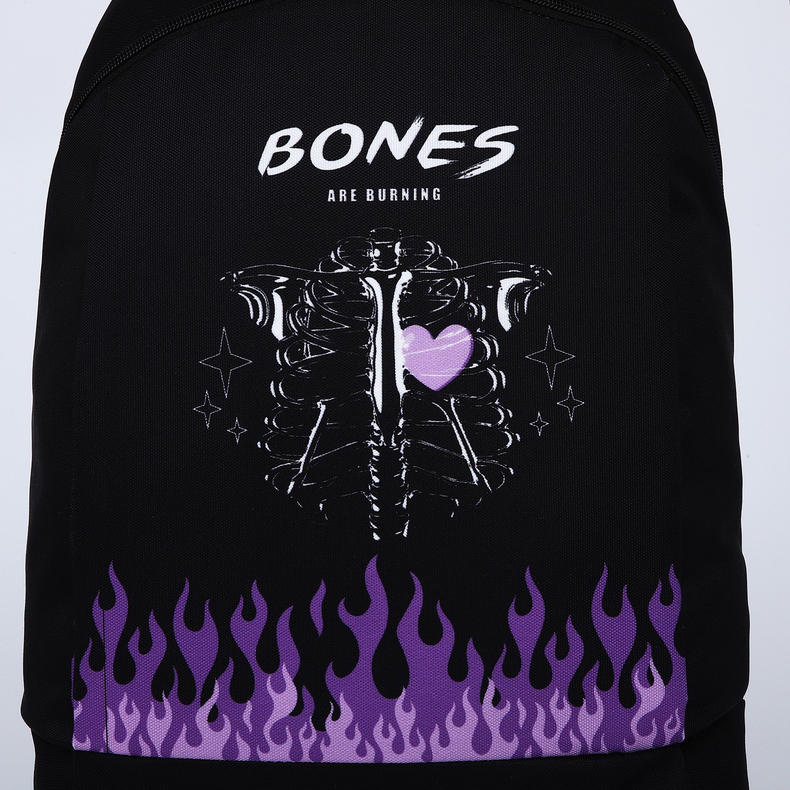 Рюкзак школьный текстильный BONES, 46x30x10 см, вертикальный карман, чёрный, 10x30x46 см., NAZAMOK, Россия