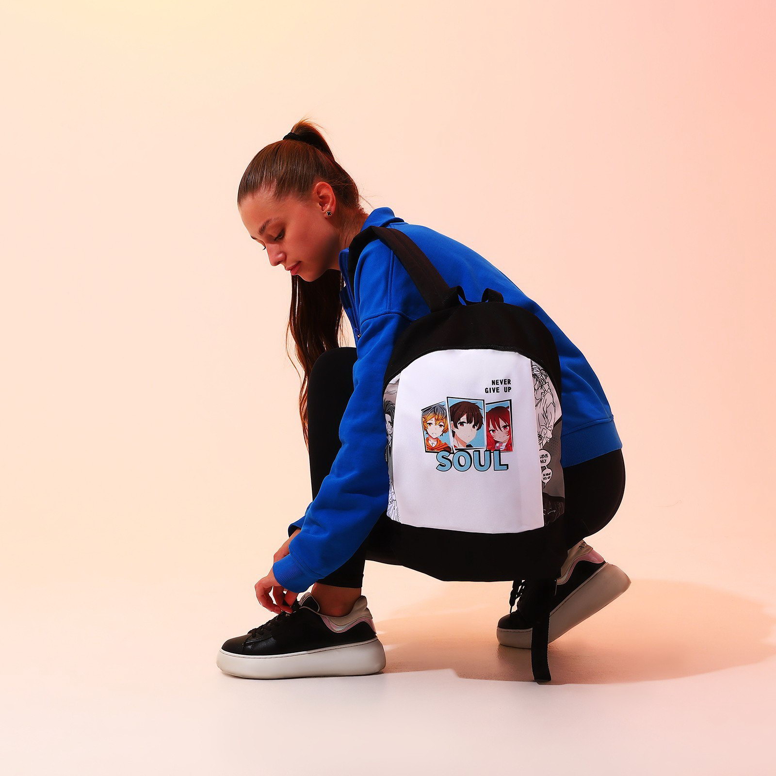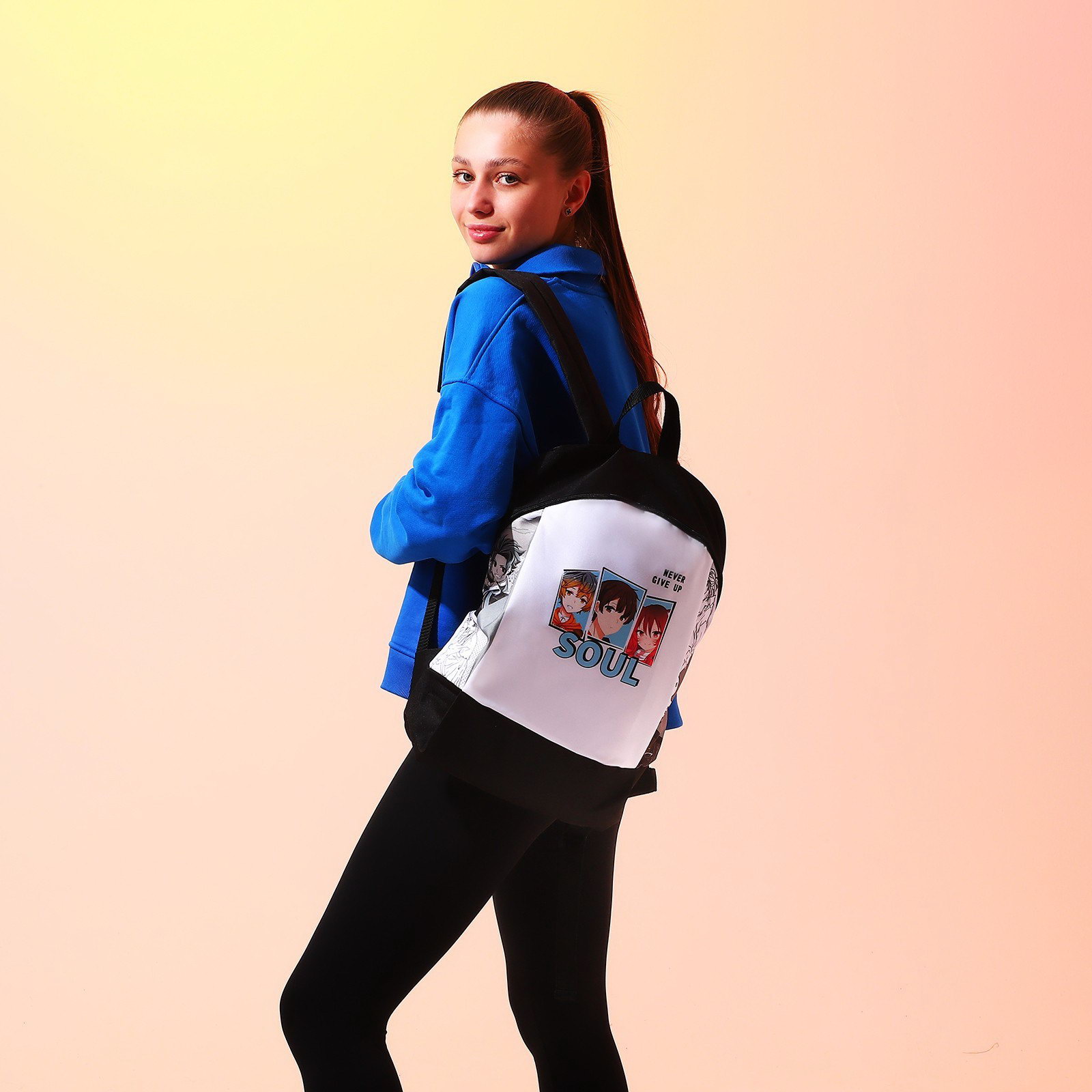 Рюкзак школьный текстильный "Аниме", 46x30x10 см, вертикальный карман, чёрный, 10x30x46 см., NAZAMOK, Россия