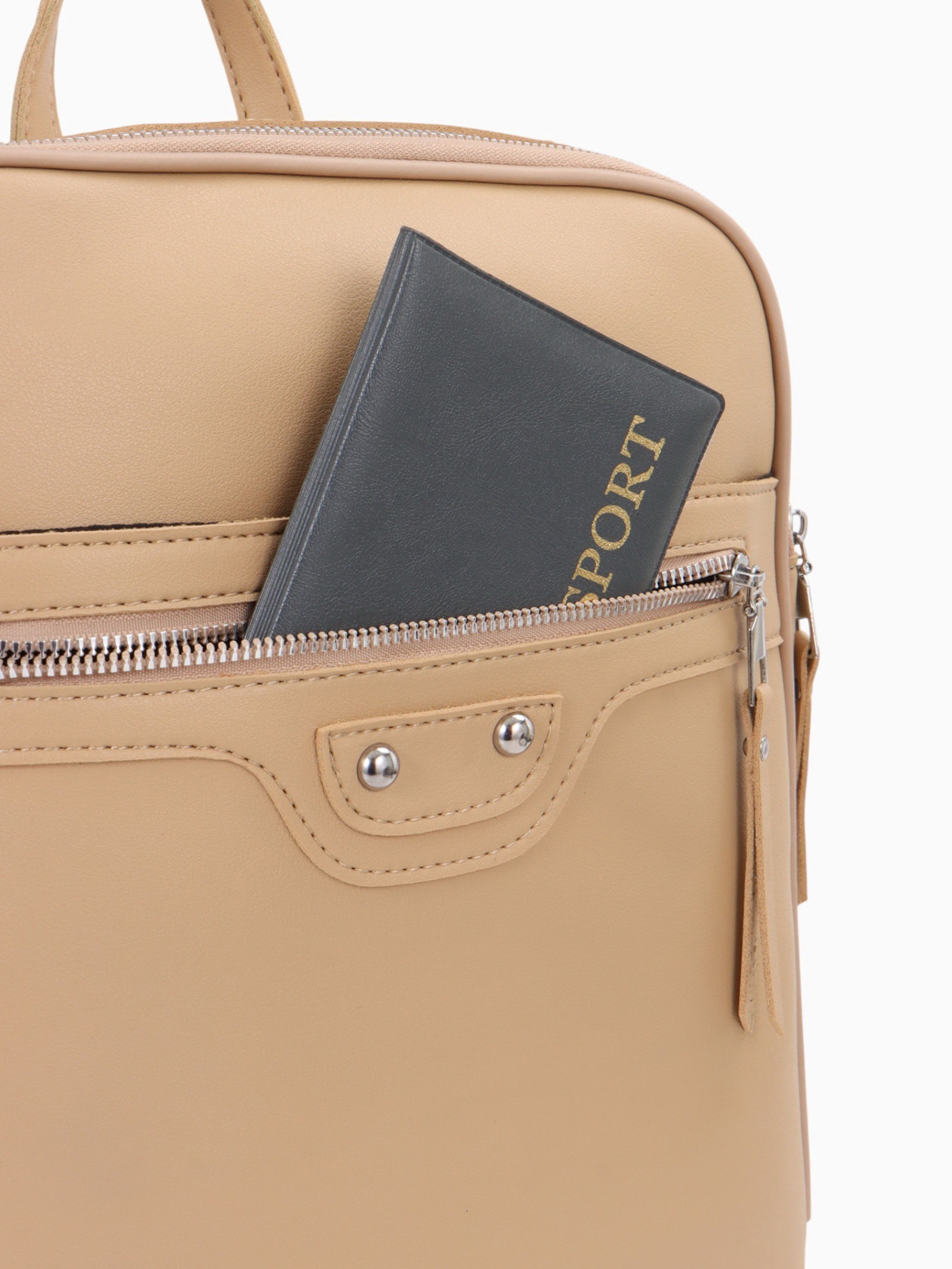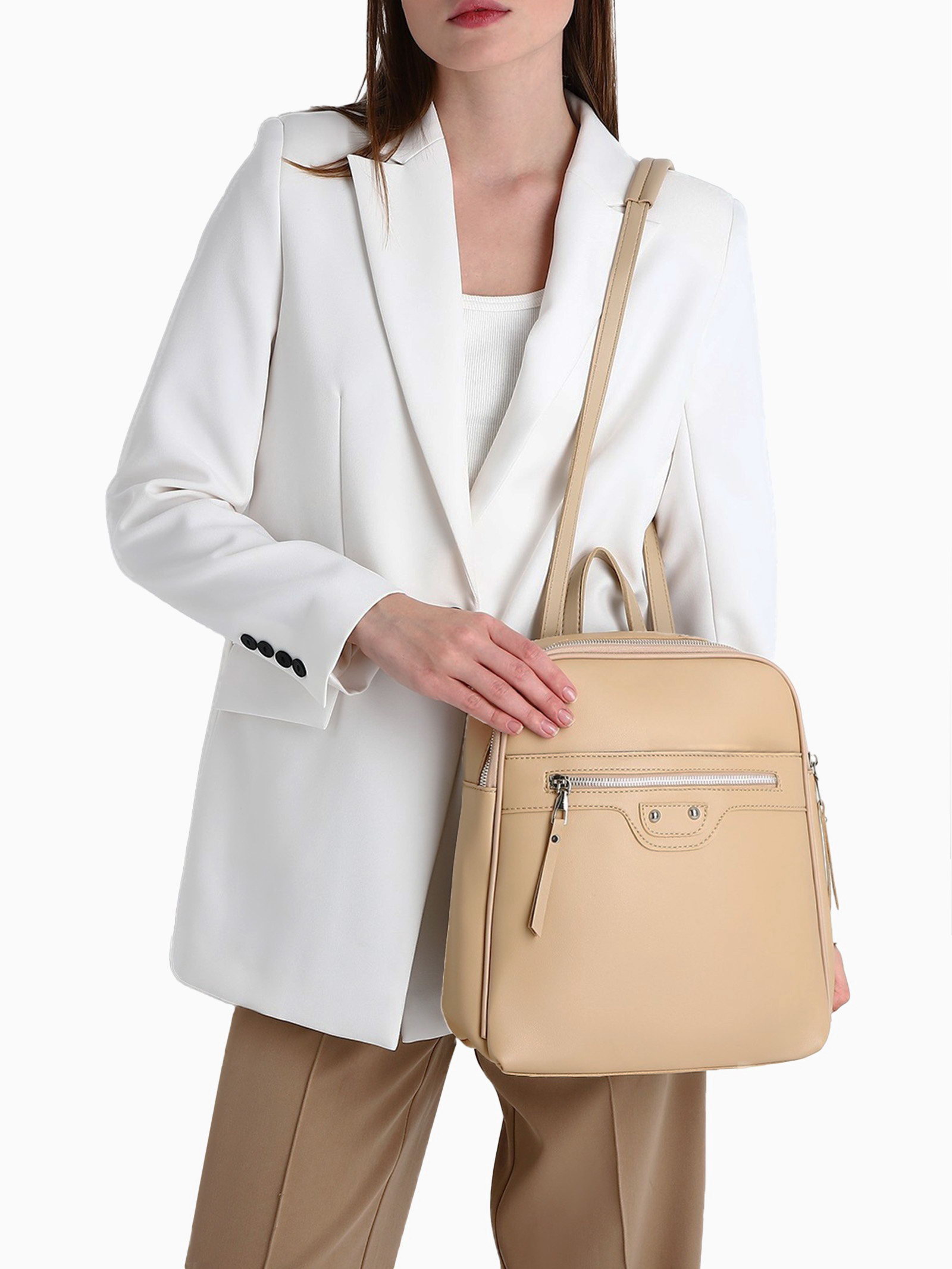Рюкзак женский на молнии, с карманами, размер 27x10x31 см, бежевый, 10x27x31 см., Китай