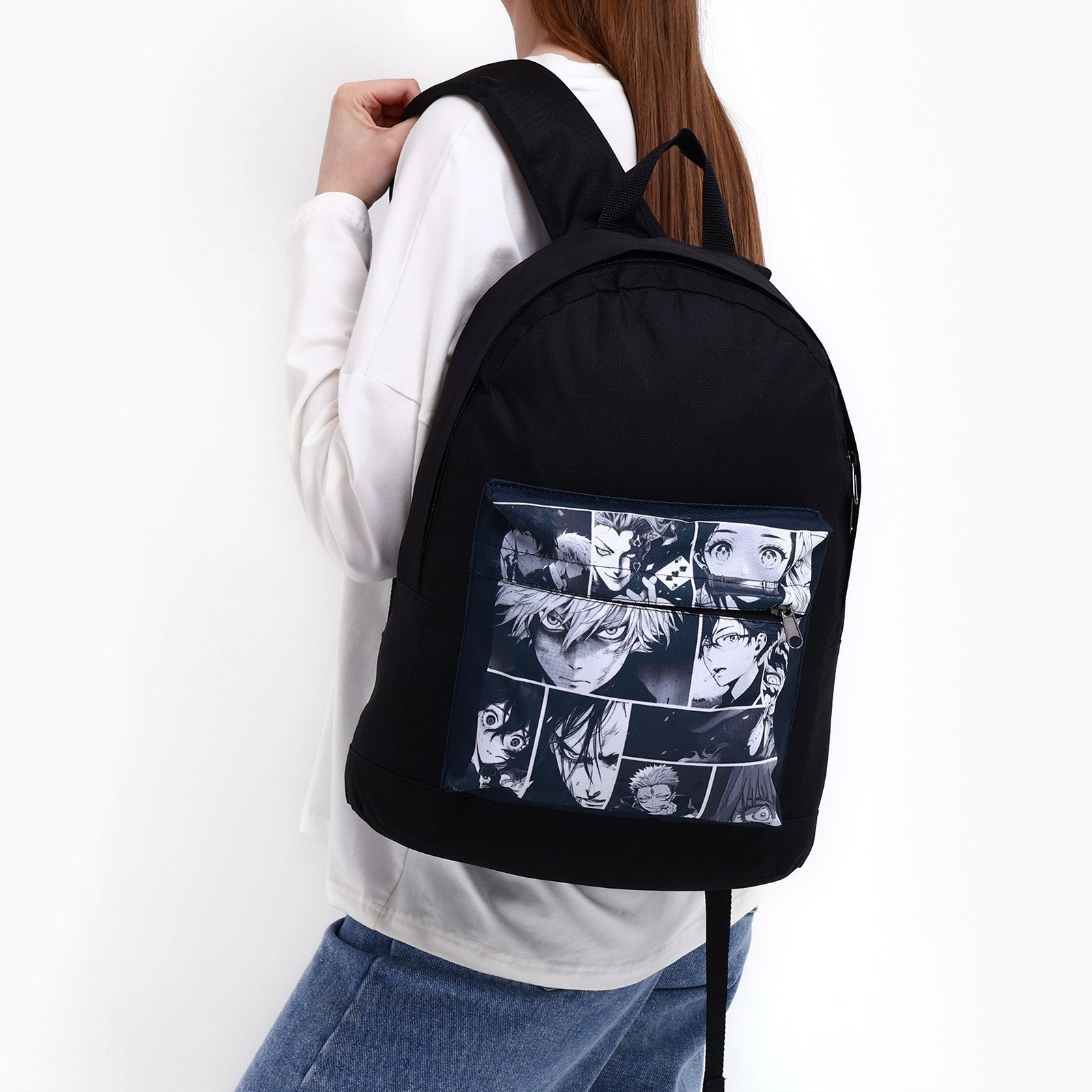Рюкзак школьный молодёжный "Аниме", 33x13x37, отдел на молнии, карман, чёрный, 33x37x13 см., NAZAMOK, Россия