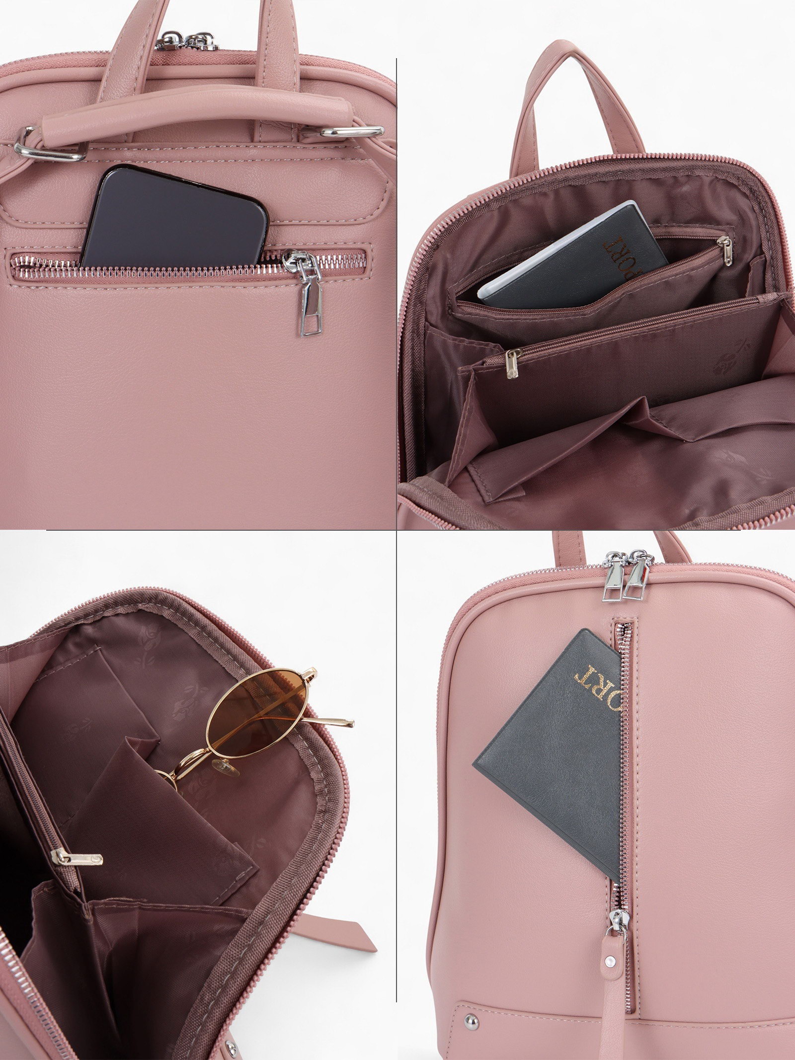 Рюкзак-сумка из на молнии, с 2 карманами, с молнией посередине, размер 25x12x30 см, розовый, 12x25x30 см., Китай