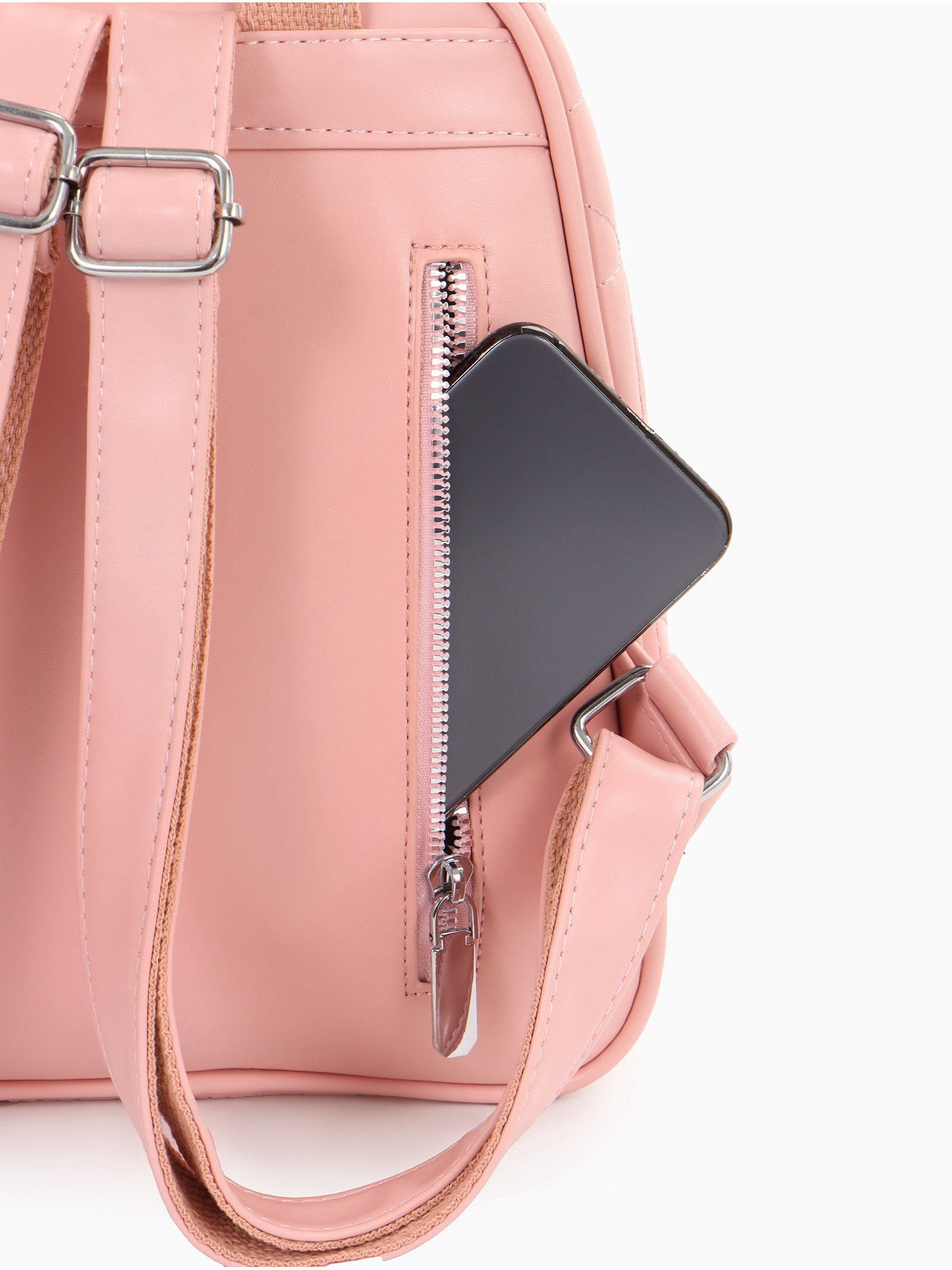 Особенности ранцев: Мягкая спинка, Со стежкой Для кого: Для девочки, Для женщины Размер: До 15 литров (маленький) см, Маленький см Размер упаковки: 5 x 30 x 33 см. Стиль: Активный образ жизни Тематика: Однотонная Цвет: Розовый Вид застёжки: Молния Вид: Рюкзак Набор: Нет Рисунок: Нет Количество лямок: 2 tnved: 4202921200 Этот компактный рюкзак нежно-розового оттенка создан для динамичного образа жизни. Мягкая спинка и стёганая поверхность создают ощущение лёгкости, а продуманные отделения помогают организовать пространство для ежедневных мелочей. С ним вы сохраняете мобильность, не жертвуя стилем. Особенности модели