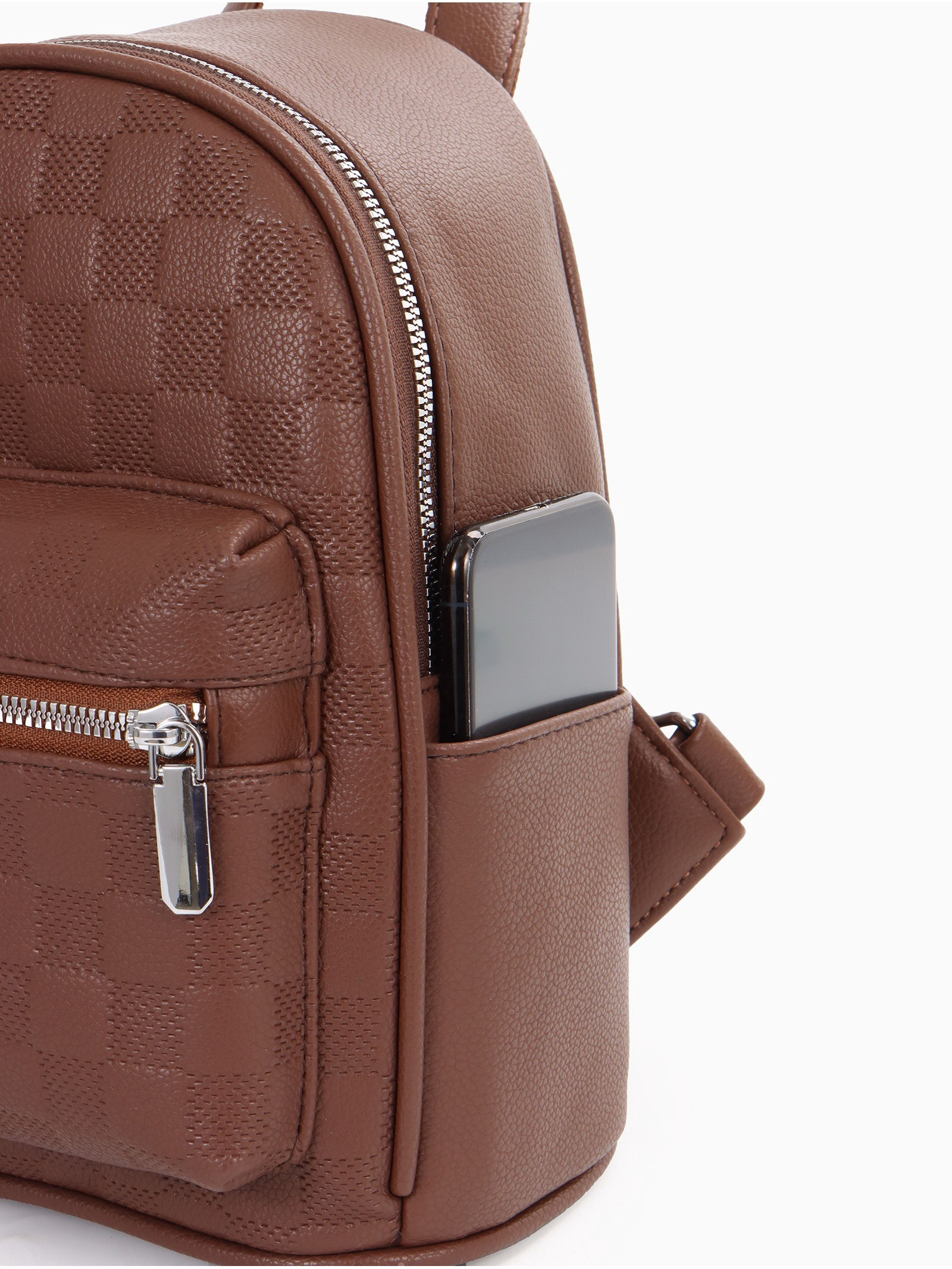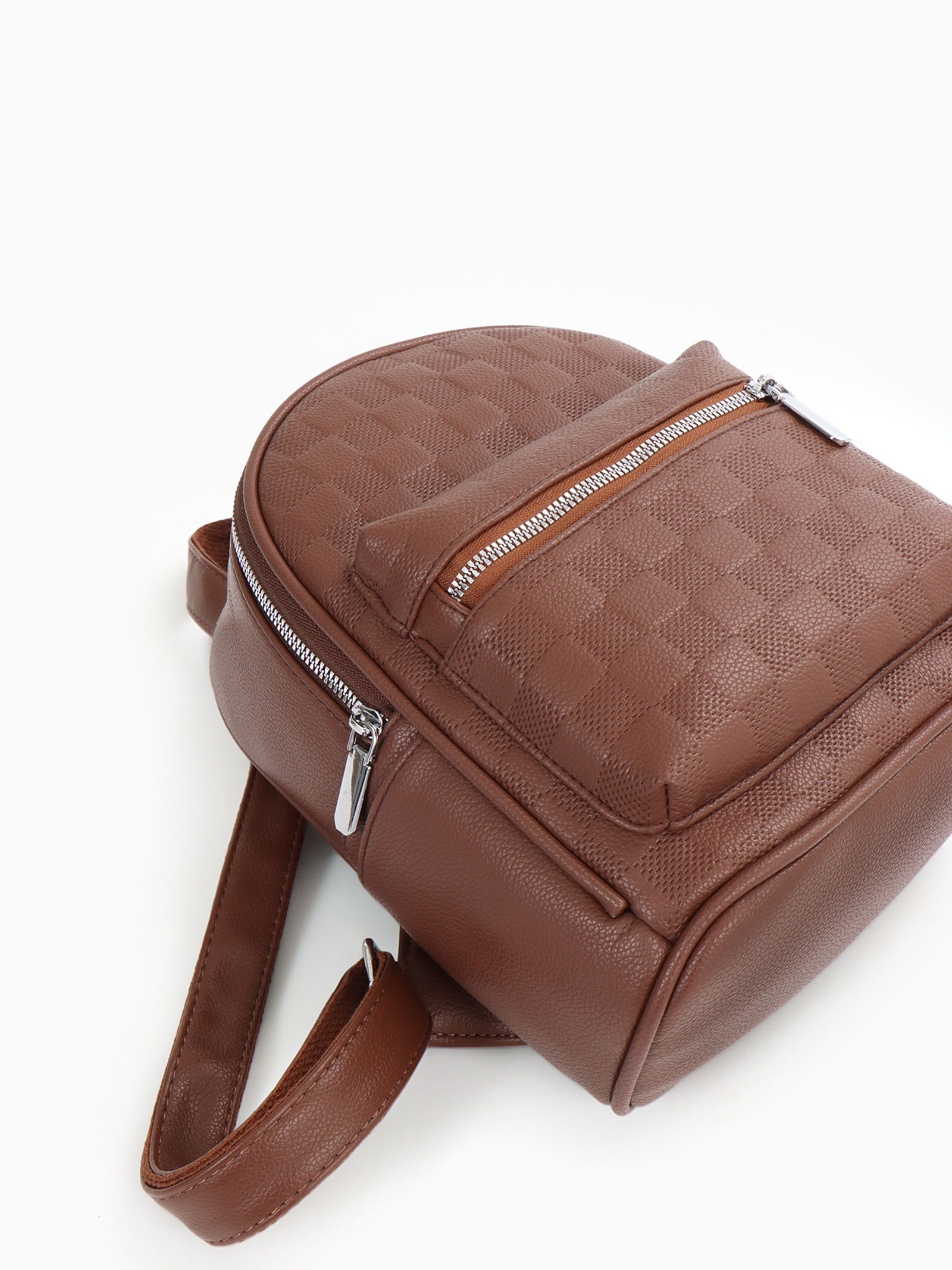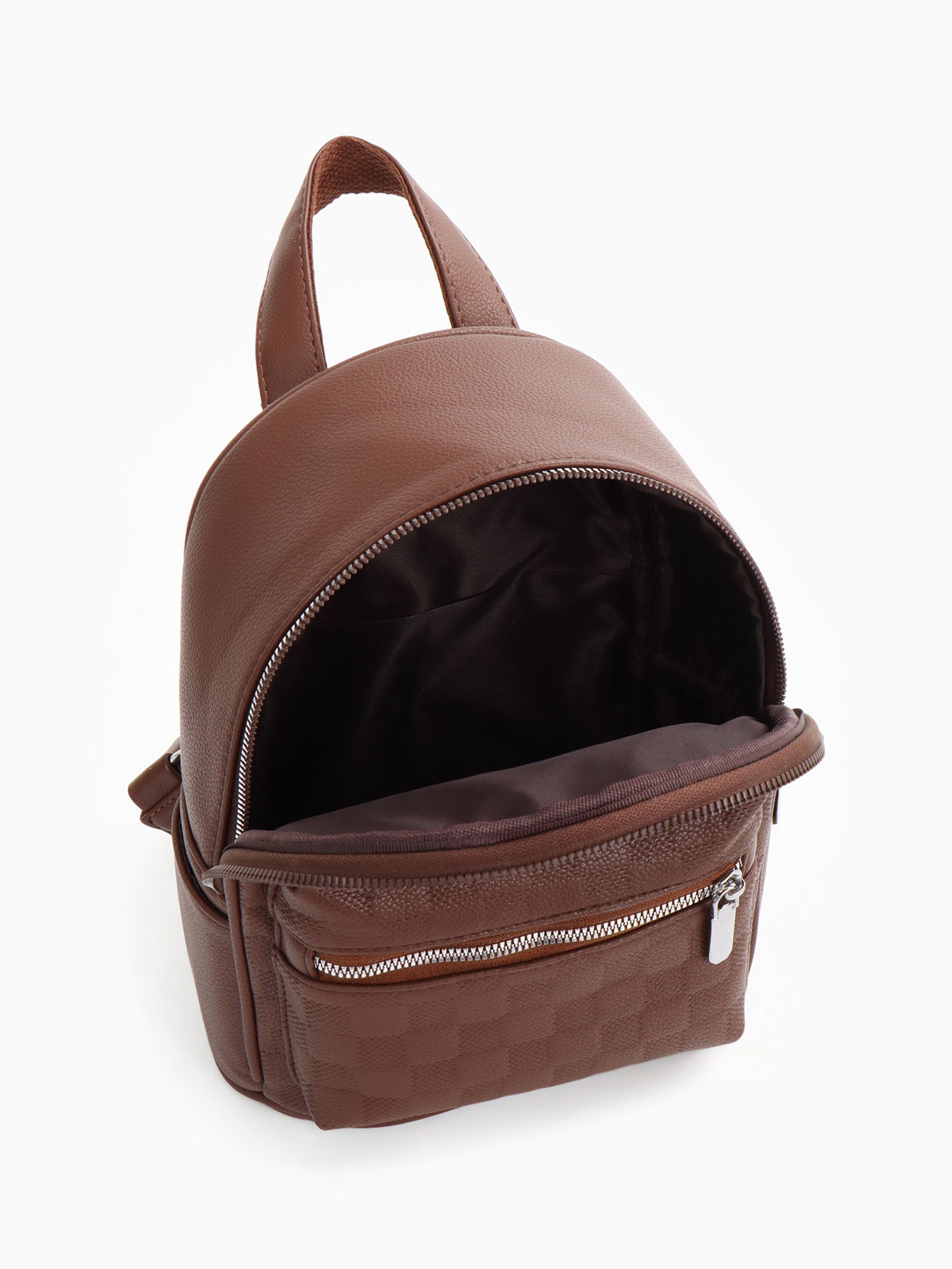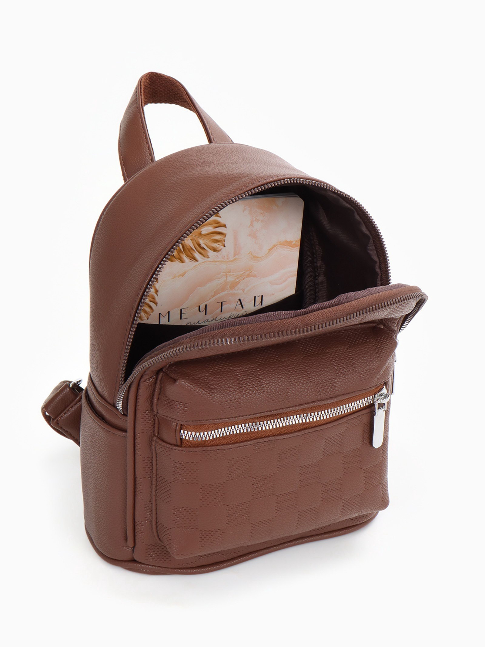 Рюкзак-мини женский на молнии, с карманом, размер 22x14x26 см, коричневый, 14x22x26 см., Китай
