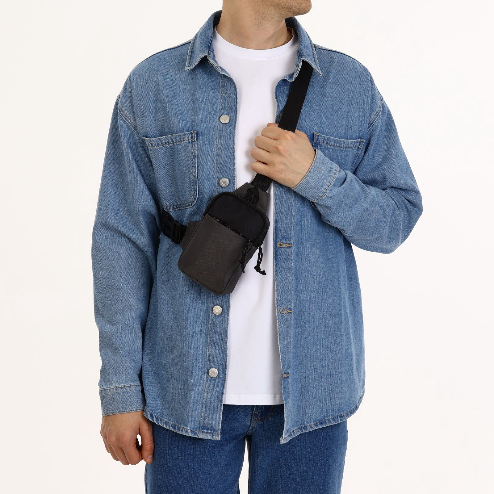 Сумка-слинг из текстиля, цвет серый, 3x11x18 см., Китай