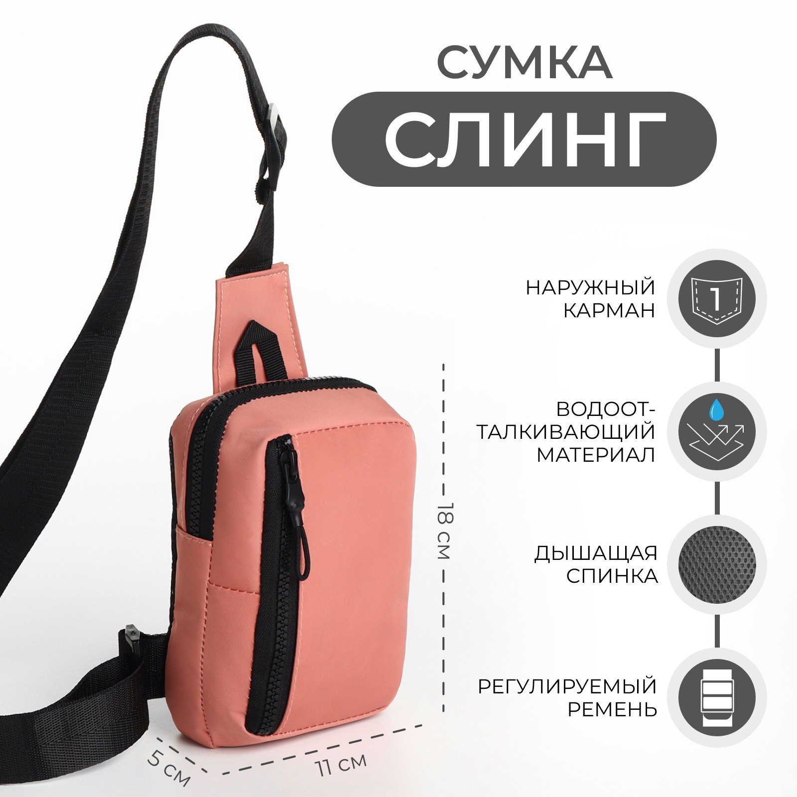 Сумка-слинг женская из текстиля, цвет розовый, 5x11x18 см., Китай