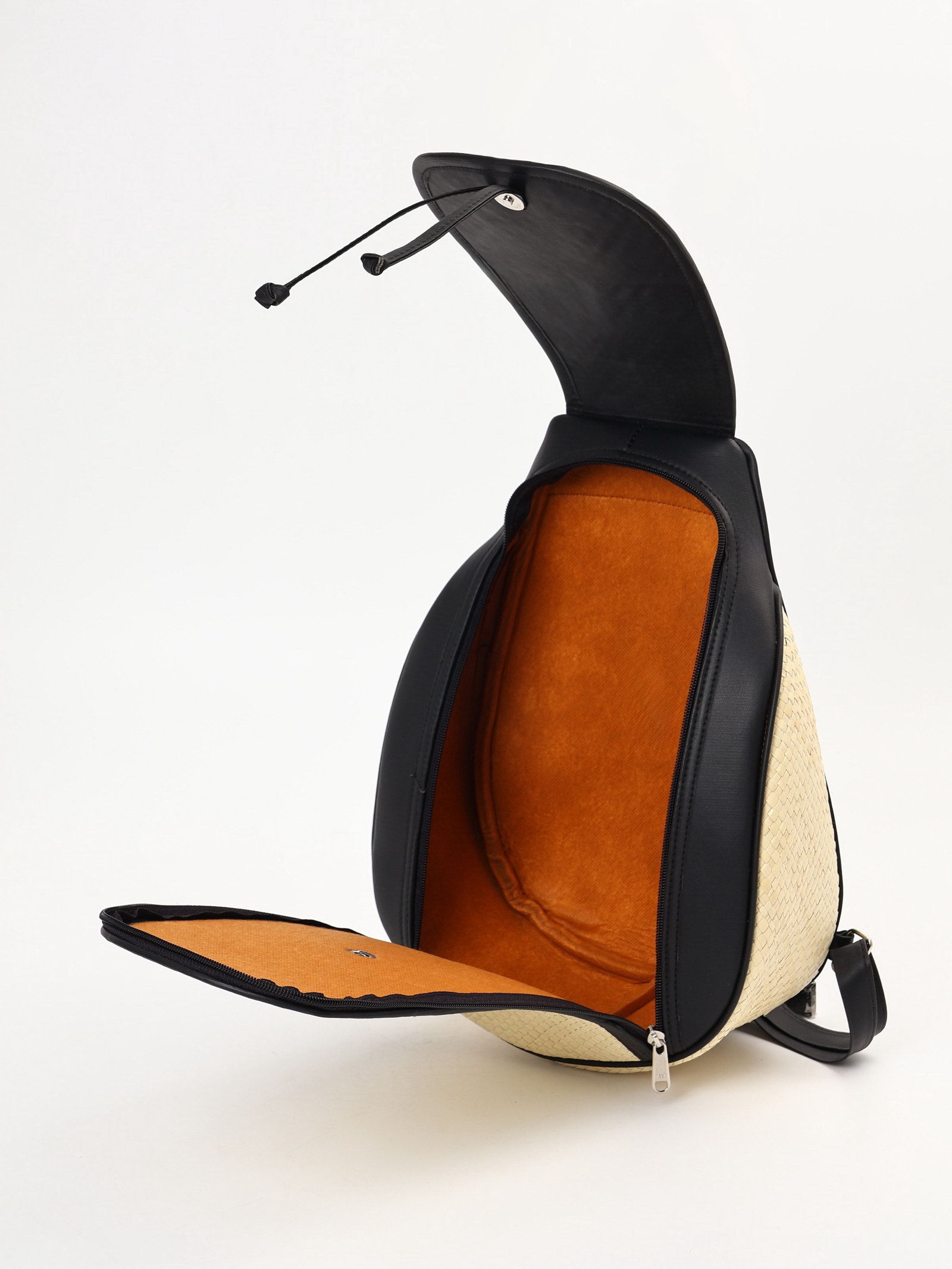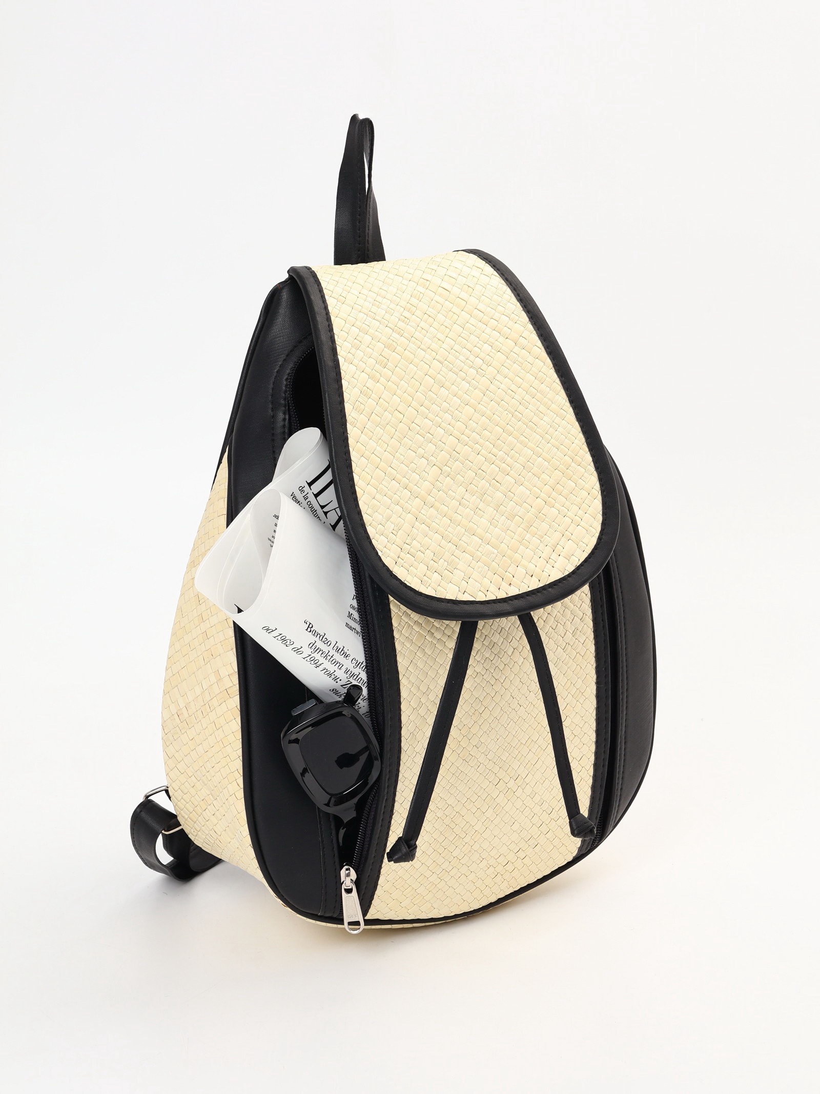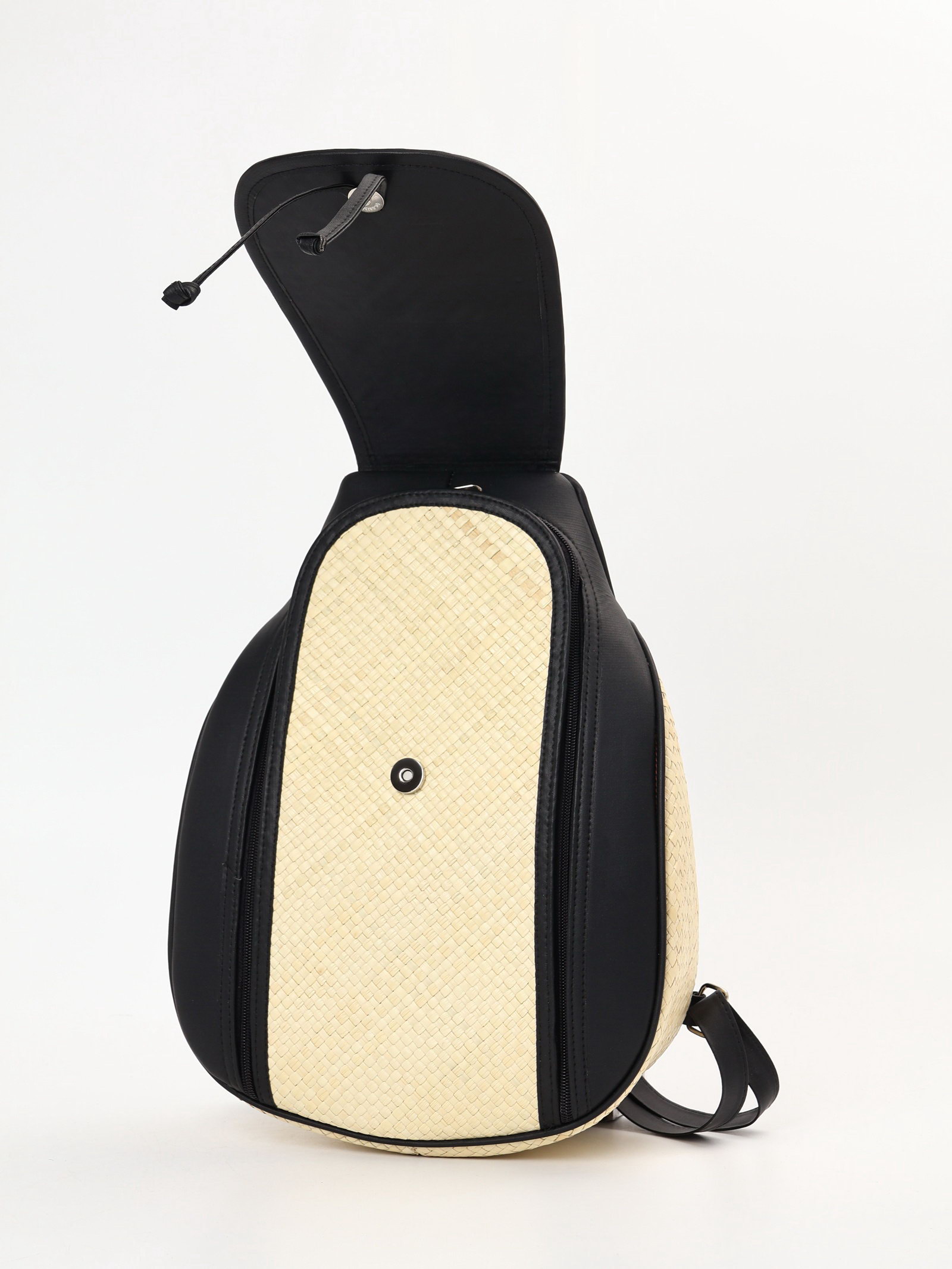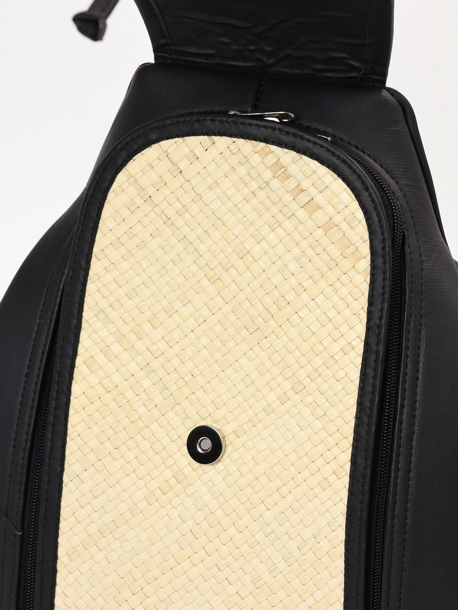 Сумка - рюкзак из бамбука, 25x14x37 см, плетёная, бежево-чёрная, 14x25x37 см., Индонезия