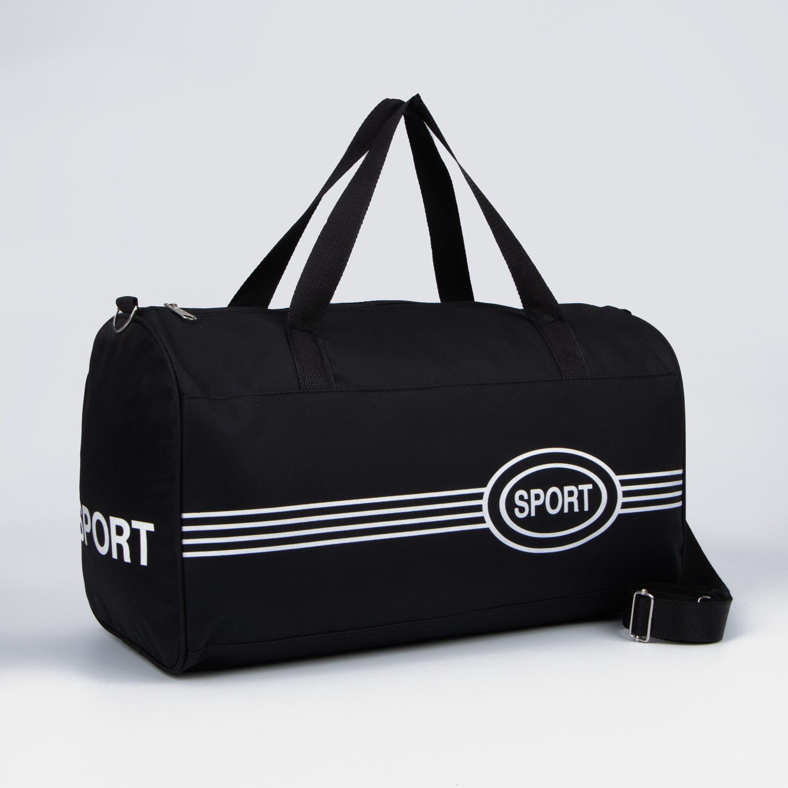 Сумка спортивная на молнии, длинный ремень, средний размер, чёрная, 20x43x24 см., Китай