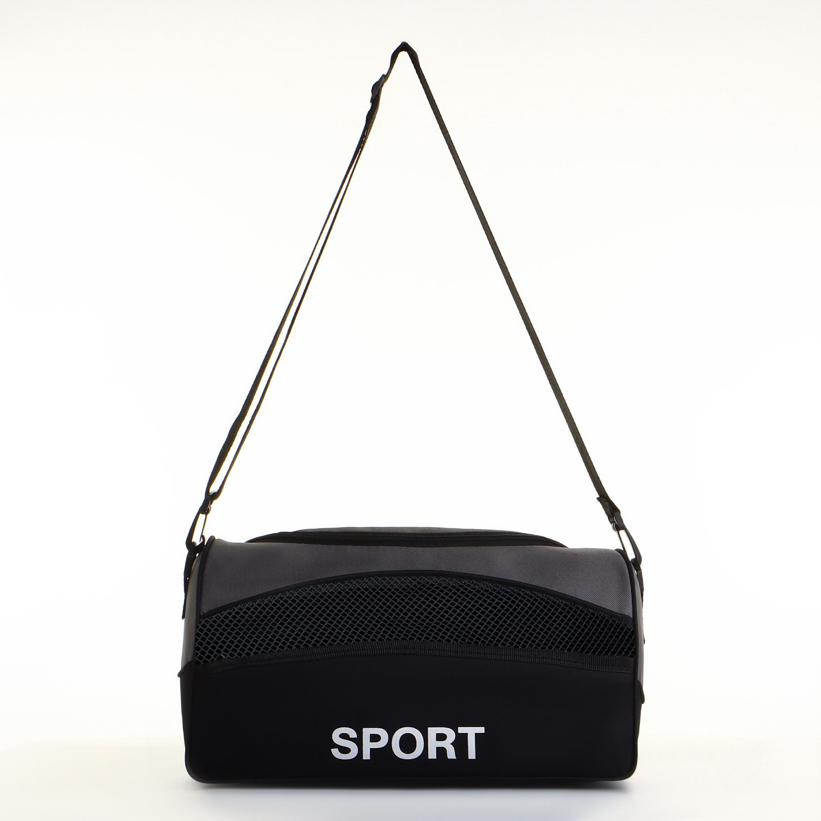 Сумка спортивная на молнии, наружный карман, регулируемый ремень, маленький размер, чёрная, серая, 18x37x19 см., Китай