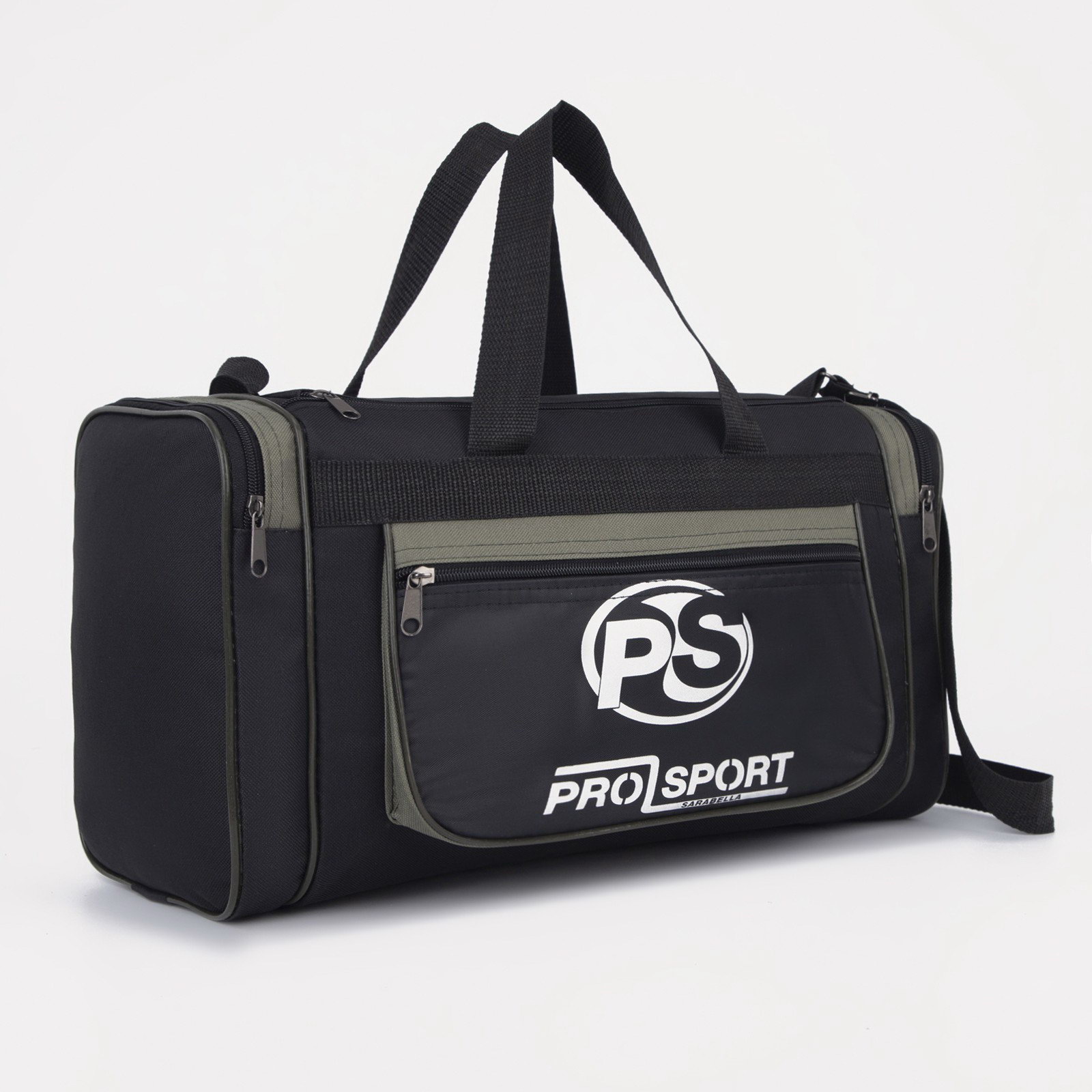 Сумка спортивная на молнии, 3 наружных кармана, длинный ремень, чёрная, хаки, 19x41x24 см., САРАБЕЛЛА, Россия