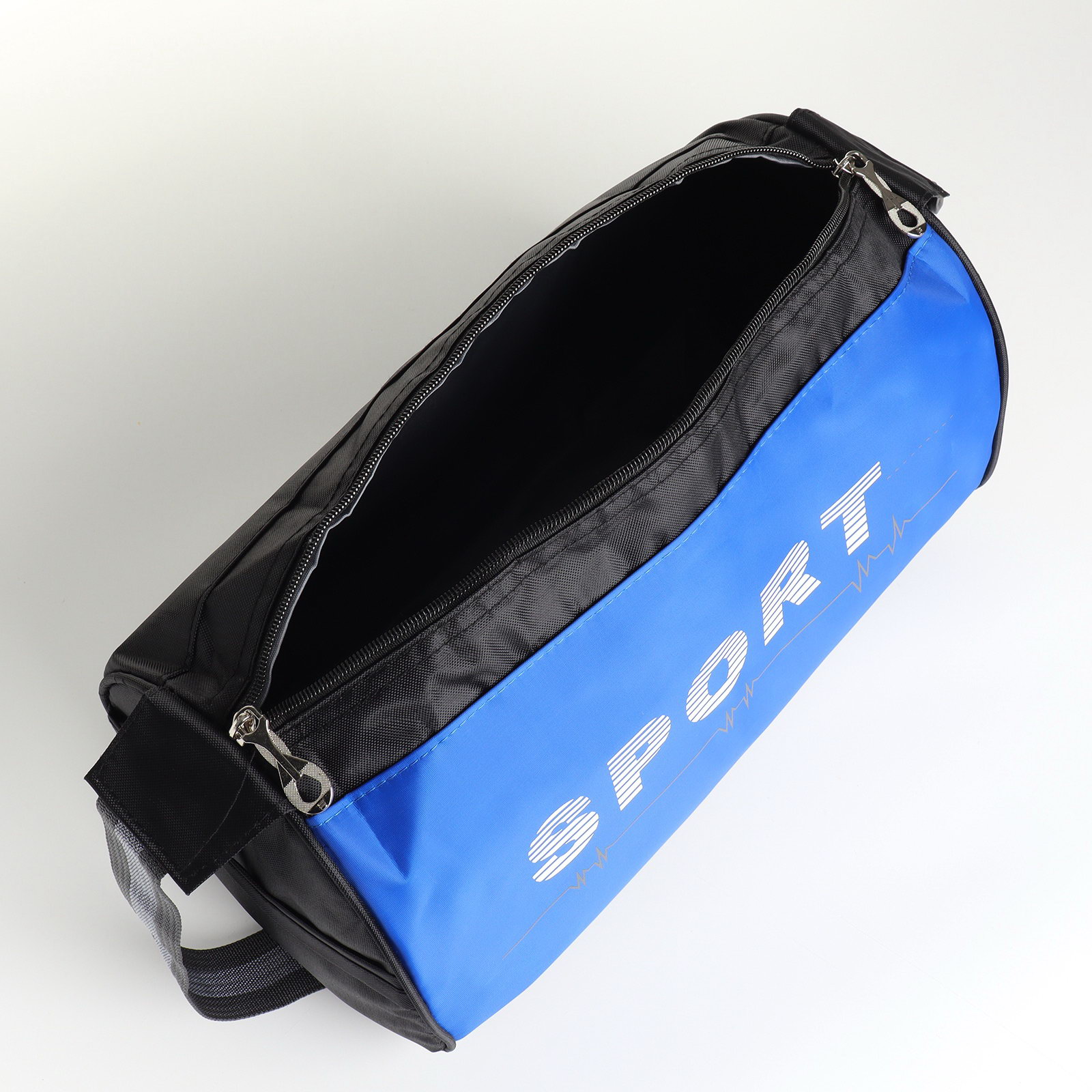 Сумка спортивная на молнии, боковой карман/сетка, регулируемый ремень, маленький размер, цвет чёрный/василёк, 18x37x20 см., Китай