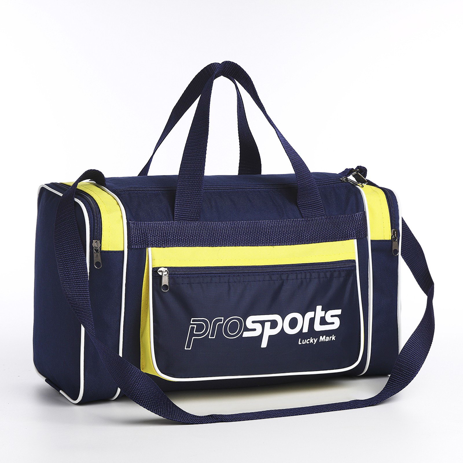 Сумка спортивная мужская на молнии, 3 наружных кармана, длинный ремень, средний размер, синяя, жёлтая, 19x40x23 см., Lucky Mark, Россия