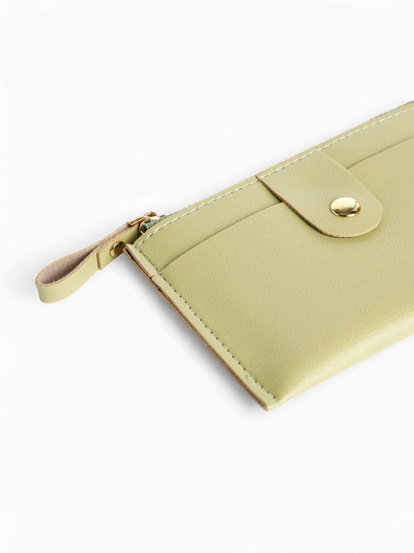 Картхолдер с монетницей на молнии, на 3 карты, с окошком, светло-зелёный, 0.5x13x9 см., Китай