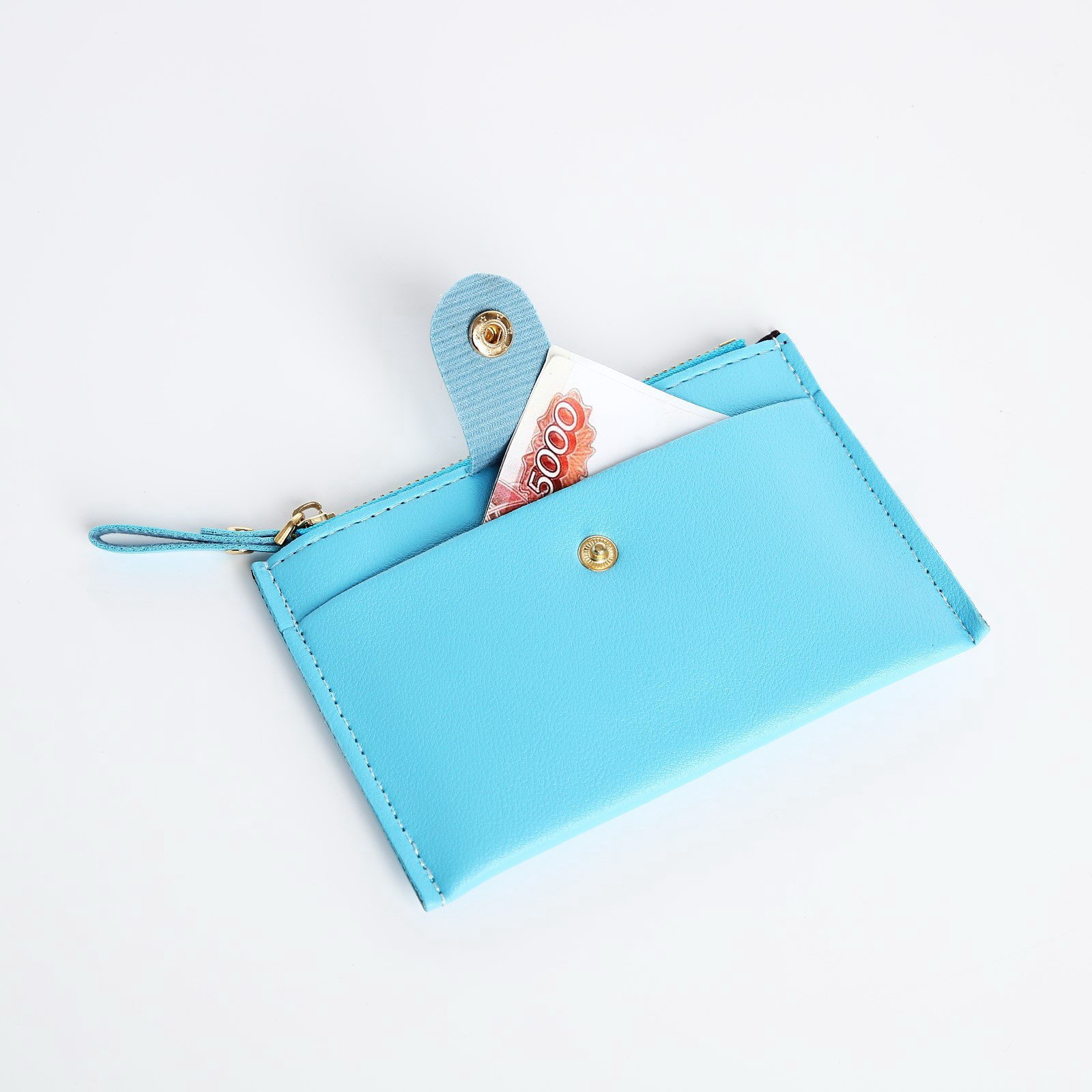 Картхолдер с монетницей на молнии, цвет голубой, 0.5x13x9 см., Китай