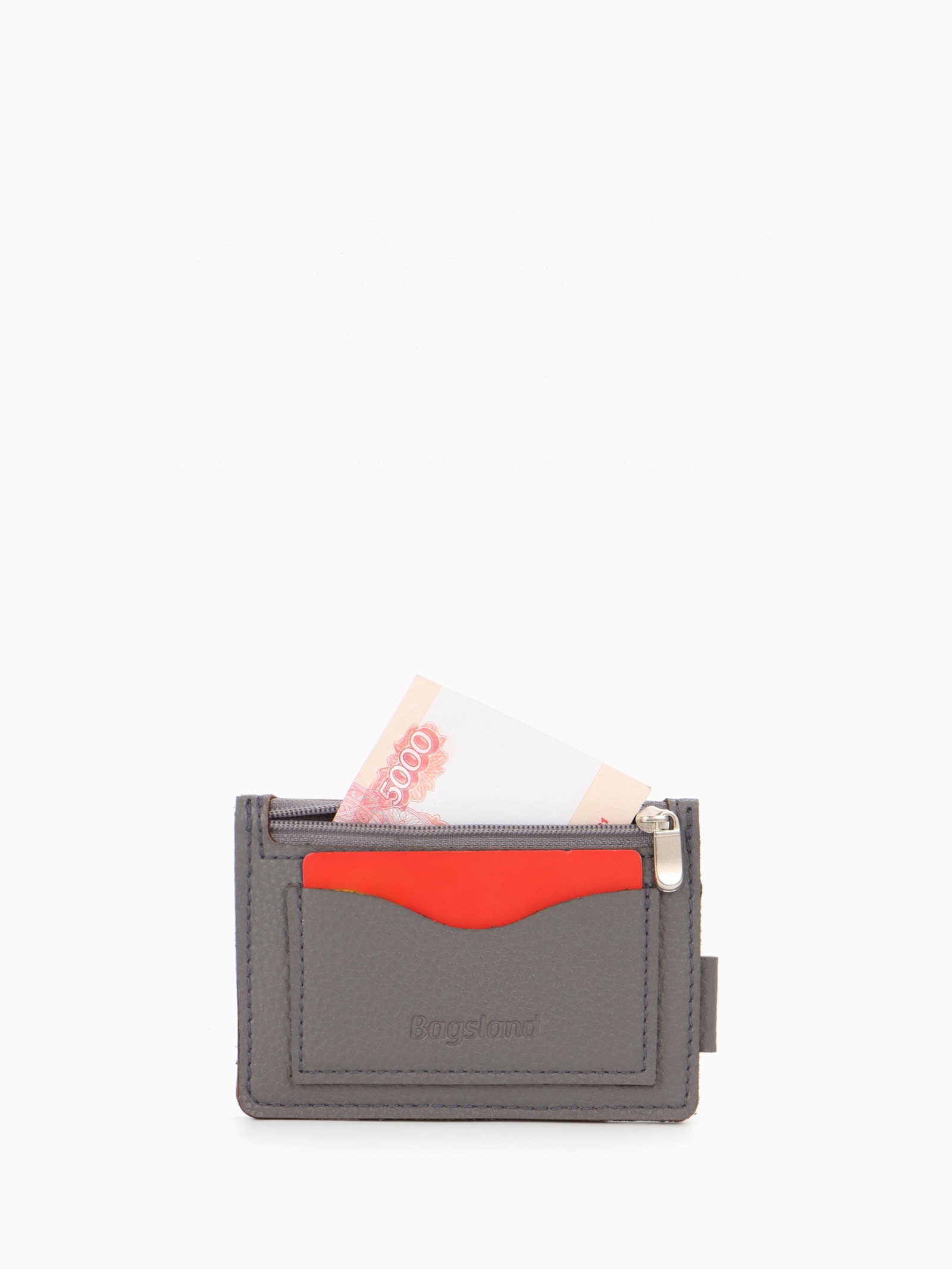 Картхолдер на 5 карт, с монетницей на молнии, серый, 1x12x8 см., Bagsland, Россия