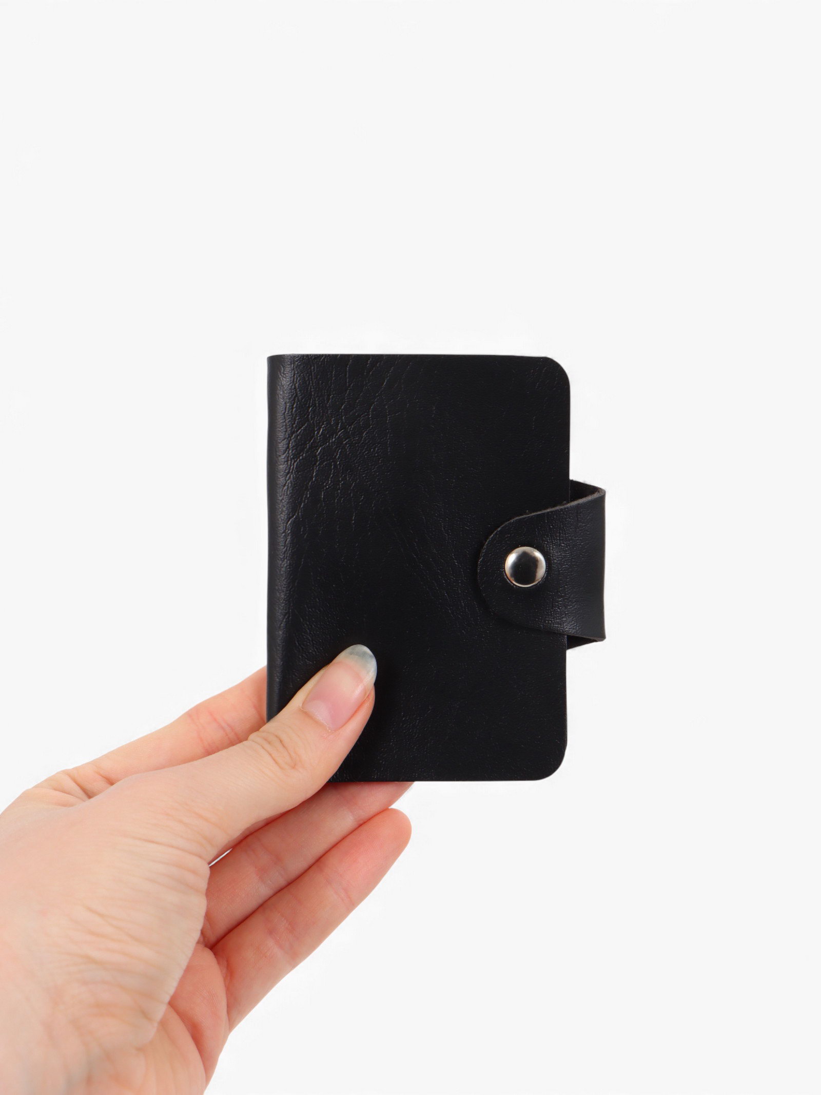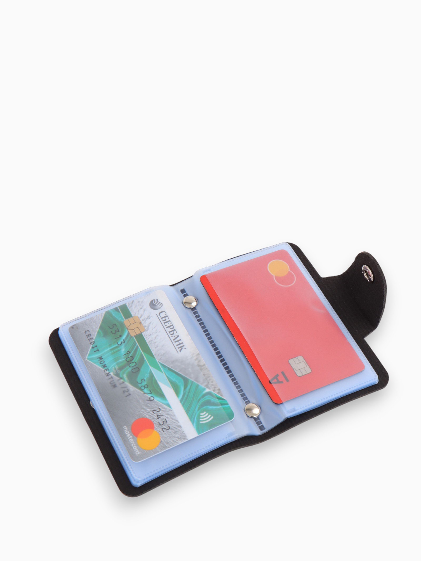 Визитница на кнопке, 12 карт, однотонная, чёрная, 1.5x7.5x10.5 см., Китай