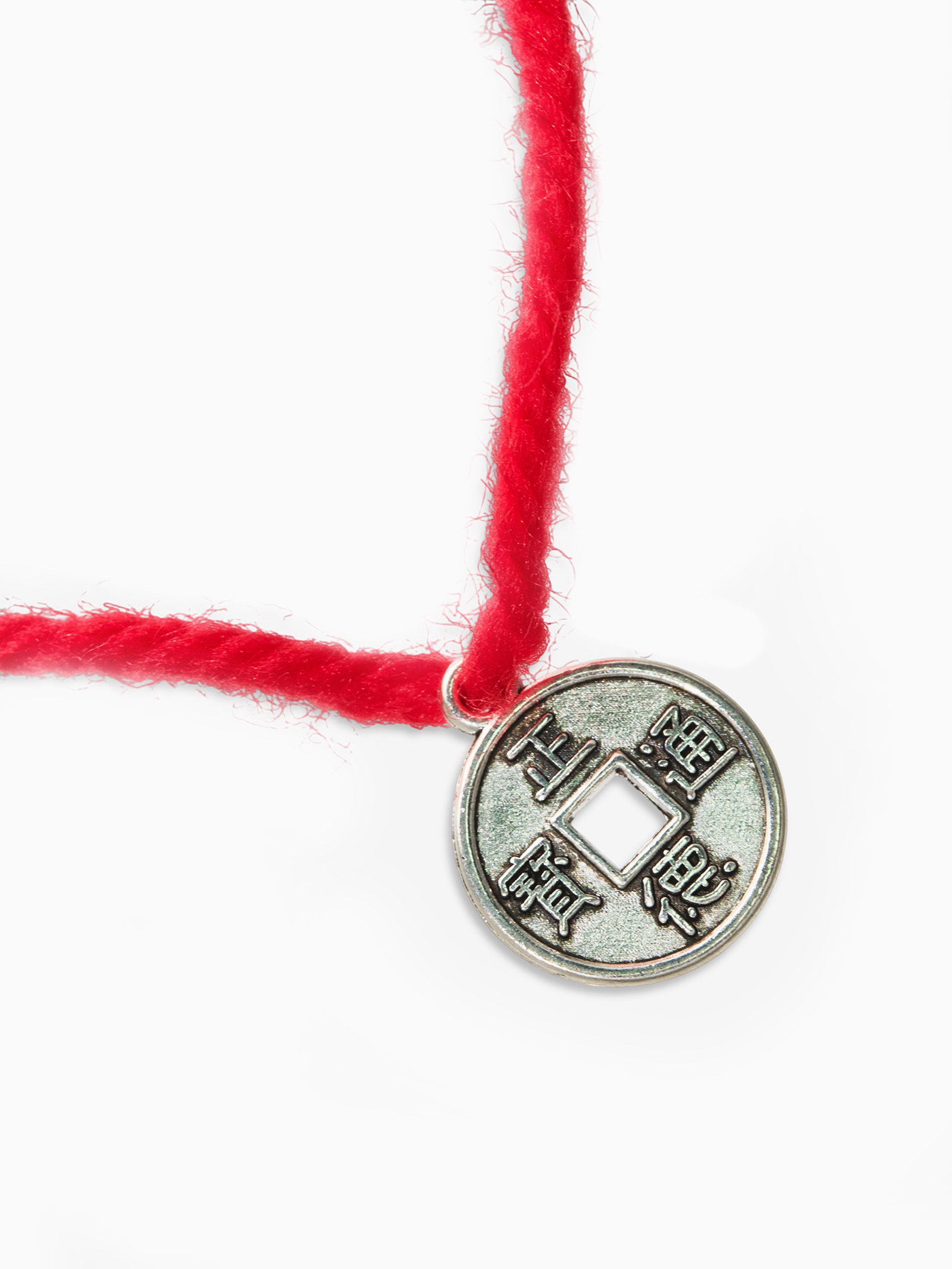 Браслет-оберег "Красная нить" на богатство, монетка, цвет серебро, 35см, 2x35x0.2 см., QF, КИТАЙ